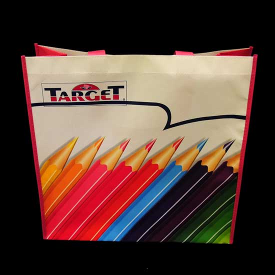 This shopping bag touts a vivid print of color pencils, lightening up your mood effortlessly. The non-woven bag is finished with a pair of pink straps for carrying. This square-shaped bag is your best partner for grocery shopping.