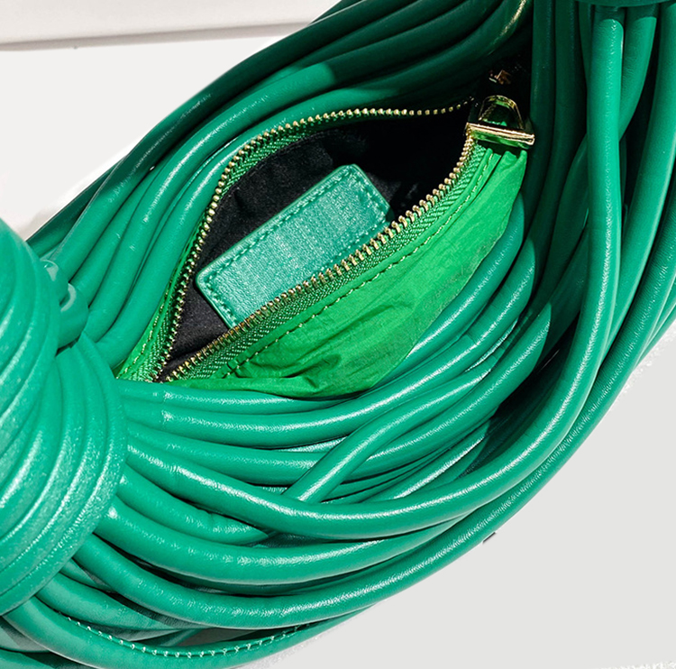 Luxury handwoven PU hobo bag with gold and silver accents for fashion brands targeting seasonal collections.