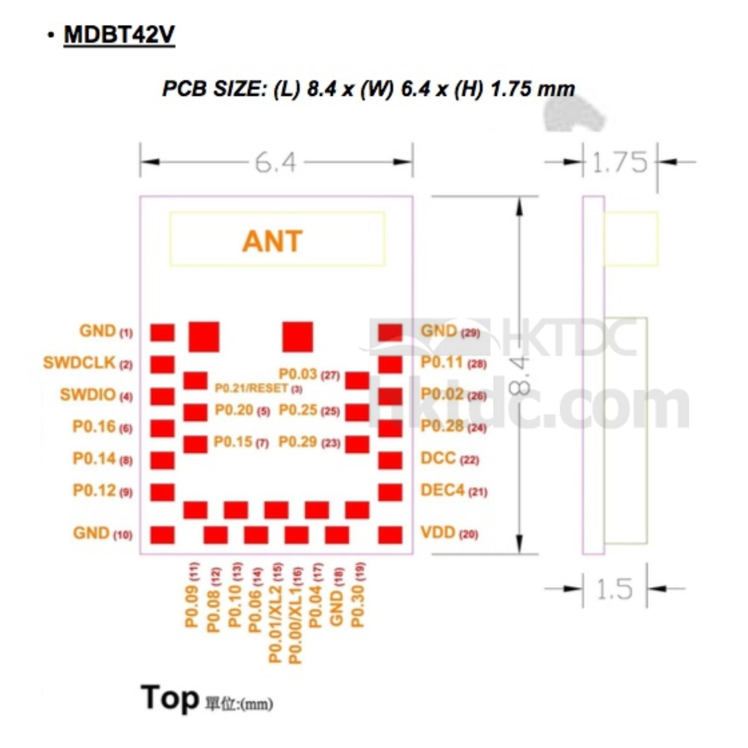 Raytac’s MDBT42V and MDBT42V-P is a BT5 and BT4.2 stack (Bluetooth low energy or BLE) module designed based on Nordic nRF52832 SoC solution, which incorporates: GPIO, SPI, UART, I2C, I2S, PWM and ADC interfaces for connecting peripherals and sensors.