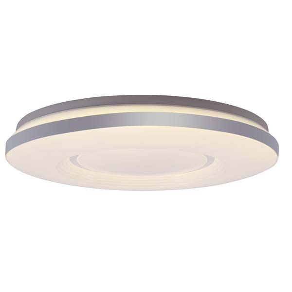 This is a round ceiling light with a layered appearance design. The upper layer is a light gray ring - shaped structure, and the lower layer is a larger white lampshade part. When lit, it can emit soft light, creating a warm atmosphere. The overall style is simple and modern, suitable for installation in indoor spaces such as living rooms and bedrooms, providing a comfortable lighting effect for the home environment.