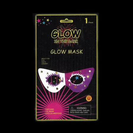 This white and purple normal glow mask consists of a mask and four glow sticks. The mask is different from an ordinary face mask as the mask will glow in the dark. Children have a lot of fun as they can wear it when participating in pretend play at parties.