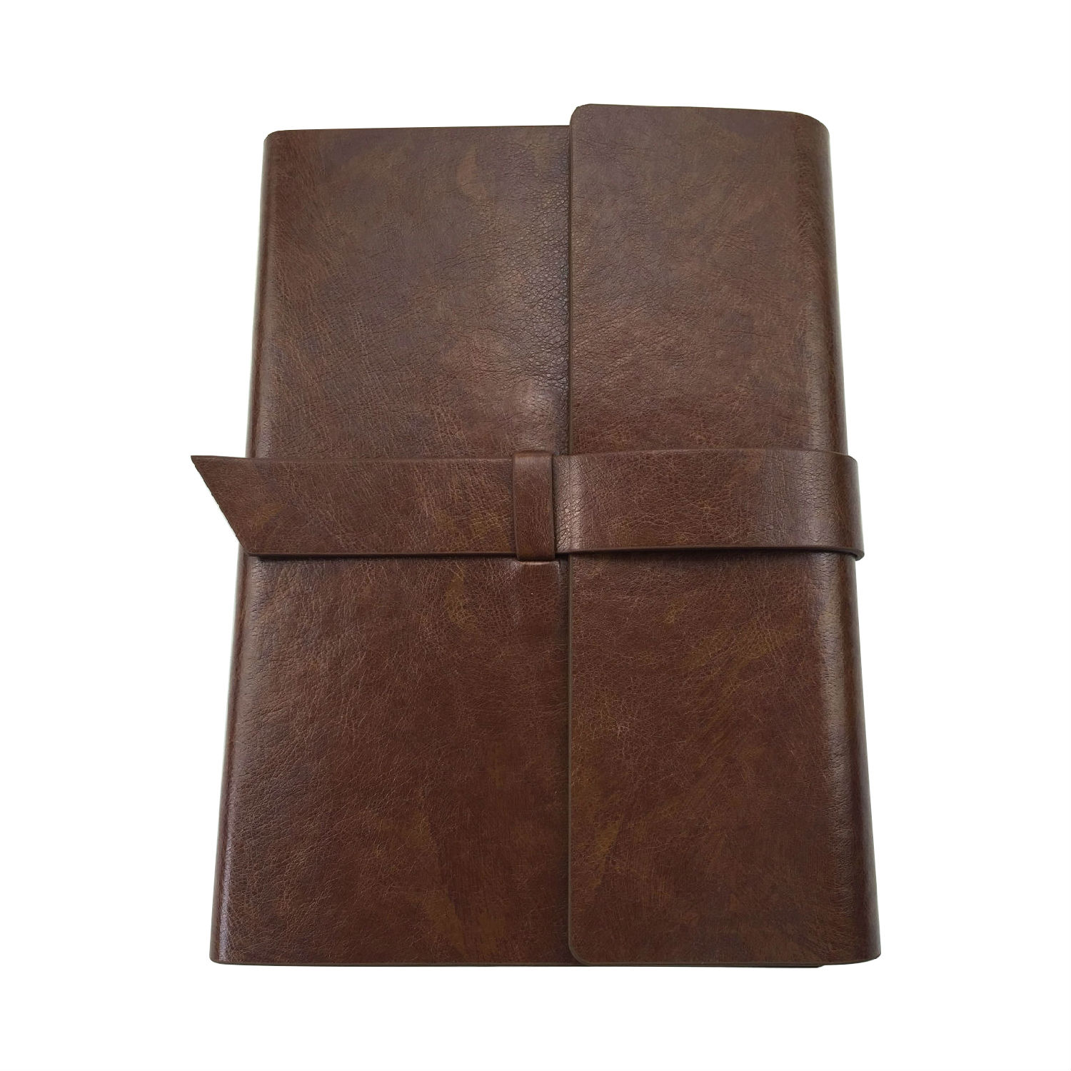 This notebook flaunts a classy design with a leatherette cover and strap closure. It has sheets made of recycled paper and offers plenty of room of writing and jotting notes. The notebook is convenient to carry around and is an excellent gift choice.