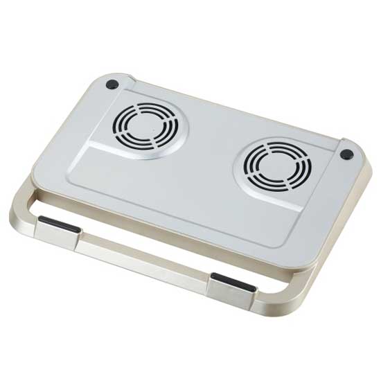 The notebook cooler has two centrifugal fans which can ensure high-speed air pressure flows and rapid cooling. The human engineering design can help relieve the users' fatigue. This notebook cooler is applicable to mainstream portable computers in the market.