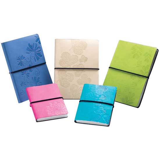 This notebook series comes with a soft Italian PU cover. The embossed pattern adds an alluring touch to the item. This notebook series has the section sewn and perfectly bound with the horizontal round elastic band closure.