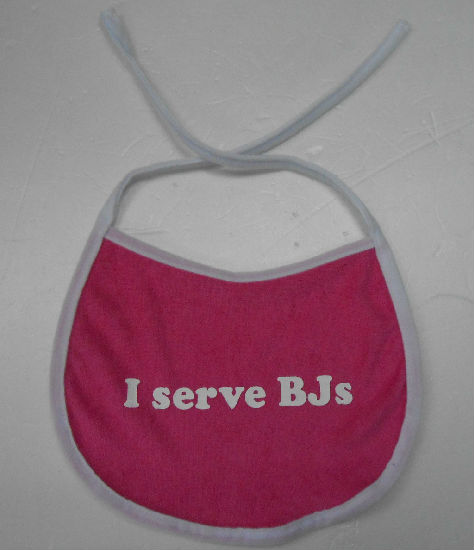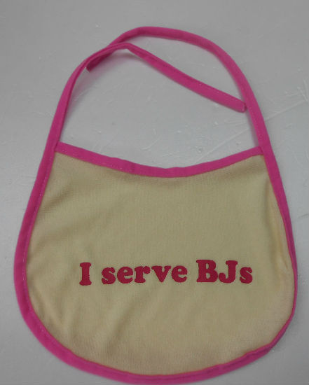 This novelty bib is made of polyester and is excellent for party use. It has straps on the side for easy wearing and is printed with messages on the surface. The novelty bib is great as an accessory for spicing up your look and is available in different designs.