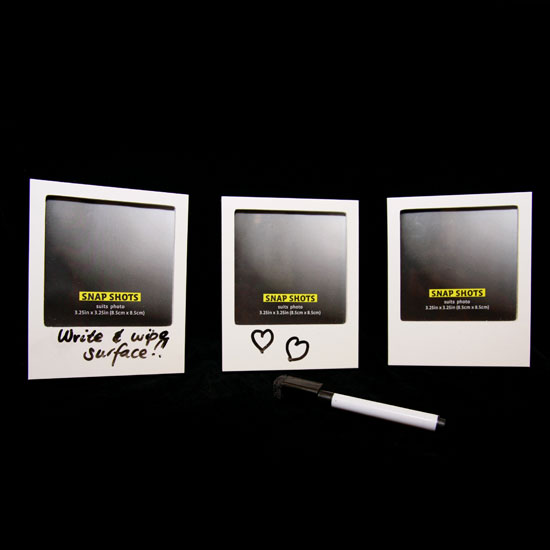 Featured here is a creative photo frame designed in the shape of an instant photo. Made with a whiteboard surface, you can jot remarks on this frame. Decorative and fun, this novelty photo frame makes an attractive gift.