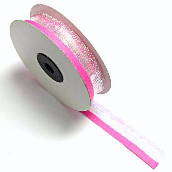 This ribbon is made of woven material. It features a novel design with dual pink colors and a shiny surface. The ribbon is ideal for gift packaging and art decoration.