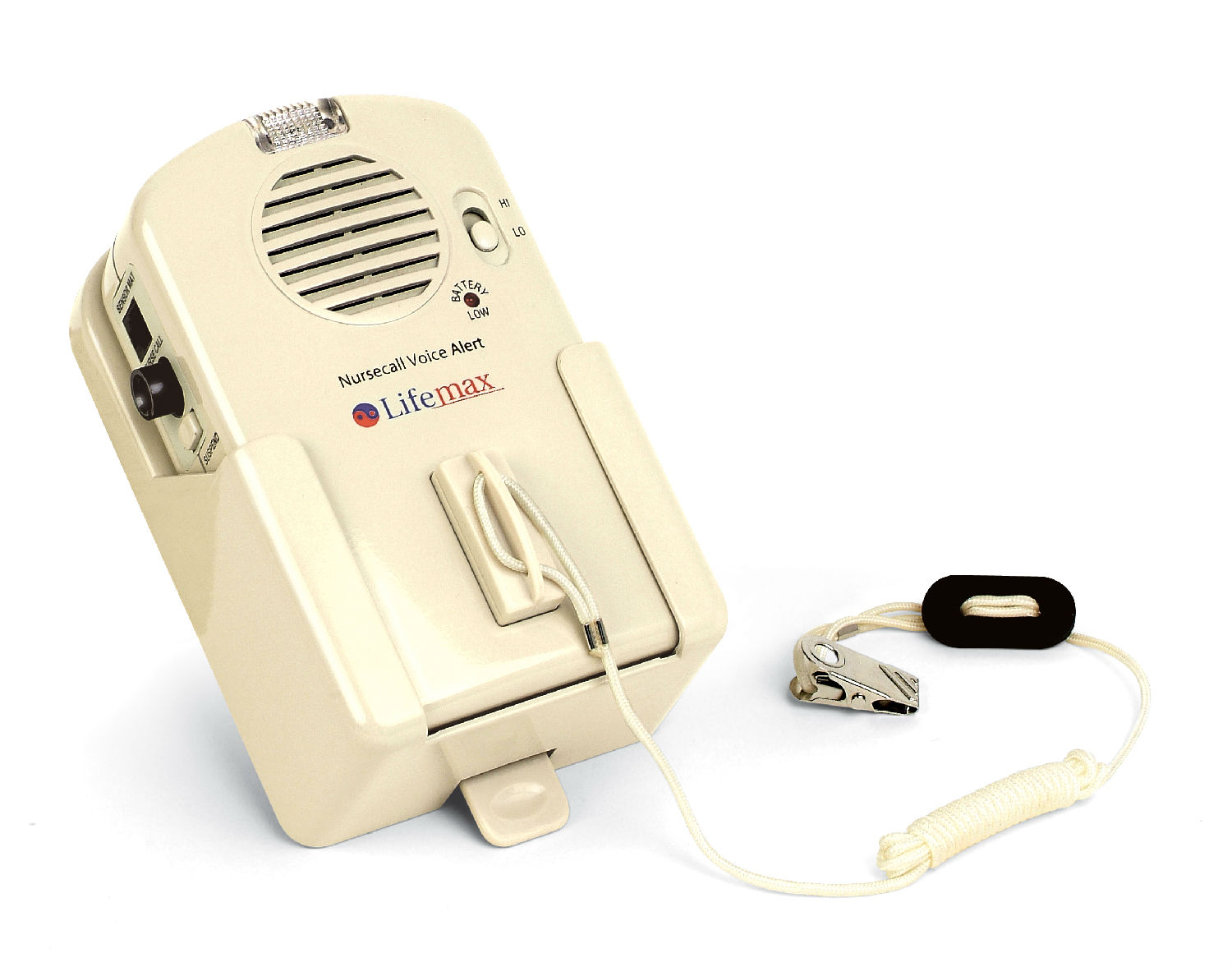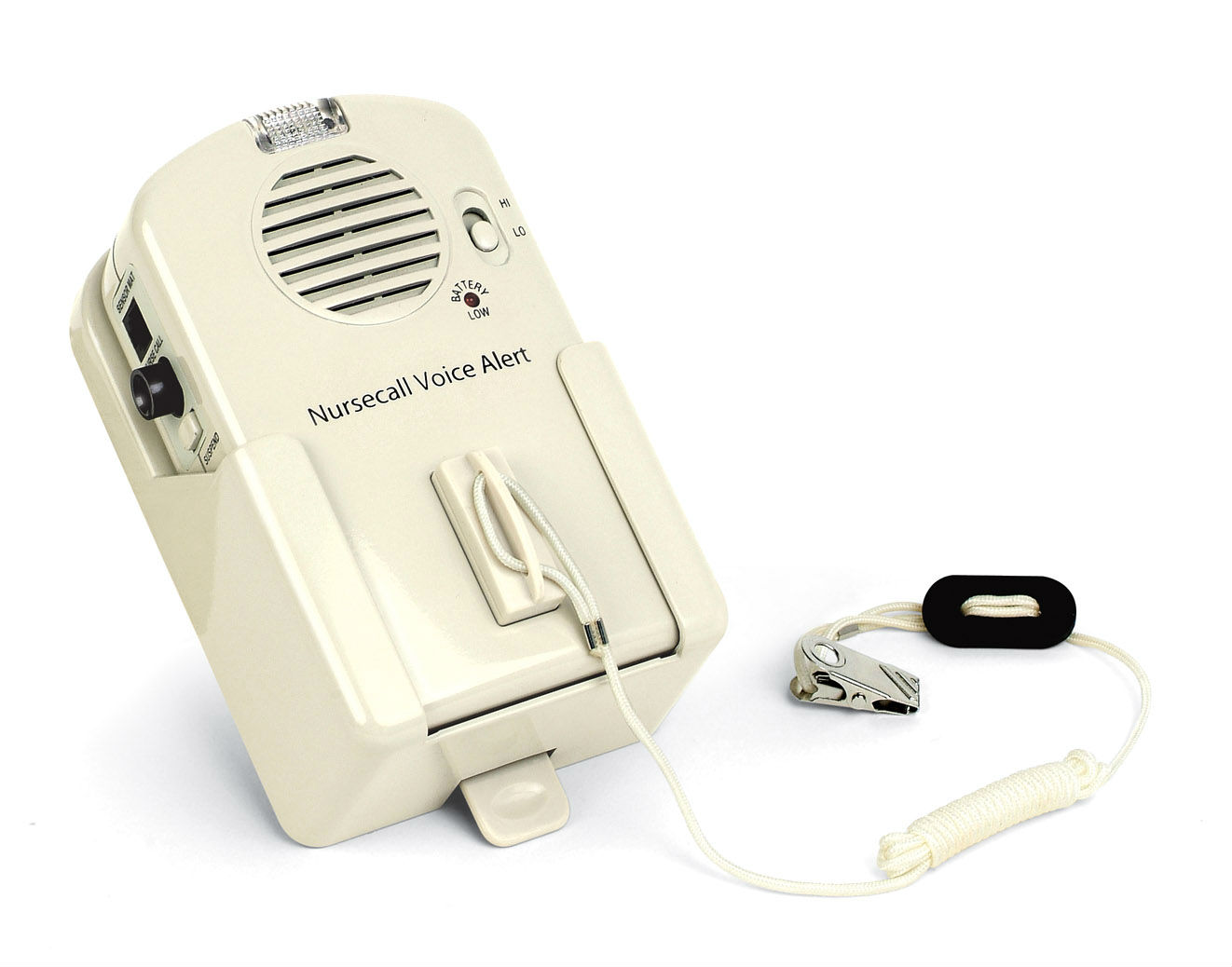 Item: TS0893 Desc: Nursecall Voice Alert Features: - Bed, wheelchair or entrance alarm with voice function. - Choice of High / Low volume or silence mode with flashing light. - Record your own alert message or instructions in a voice that is familiar to the patient. - Alert activated by the magnetic switch with cord and clip or optional sensor pads via the RJ9 socket. - Dual use with sensor pad option to alarm when the pad is either stepped on or off. - Enables caregivers to receive a remote alarm signal if connected to an existing Nursecall system via the 6.3mm mono jack. - Tamper Resistant Suspend Mode will stop monitoring temporarily to facilitate patient repositioning without triggering an alarm. - Battery low indicator to ensure uninterrupted patient monitoring. - Versatile clip and mounting bracket included.