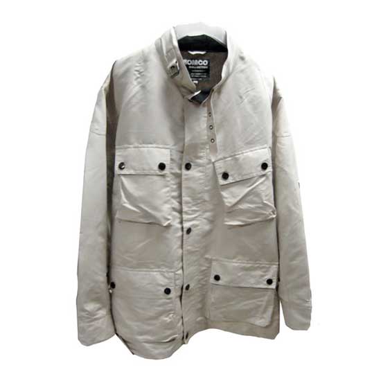 The four large flapped pockets add a chic touch to this jacket immediately. Light in color, the jacket is surely easy to mix and match. This attractive jacket with a roller buckle on the collar is a worthy addition to your wardrobe.