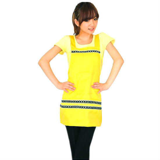 • Demonstrated is a classy bib apron in bright colored appearance.