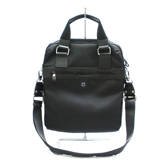 This is a nylon shoulder bag that comes in allover black for modern elegance. It is fitted with a top handle and a shoulder strap. This nylon bag is an ideal choice to complete men’s fashion collection.