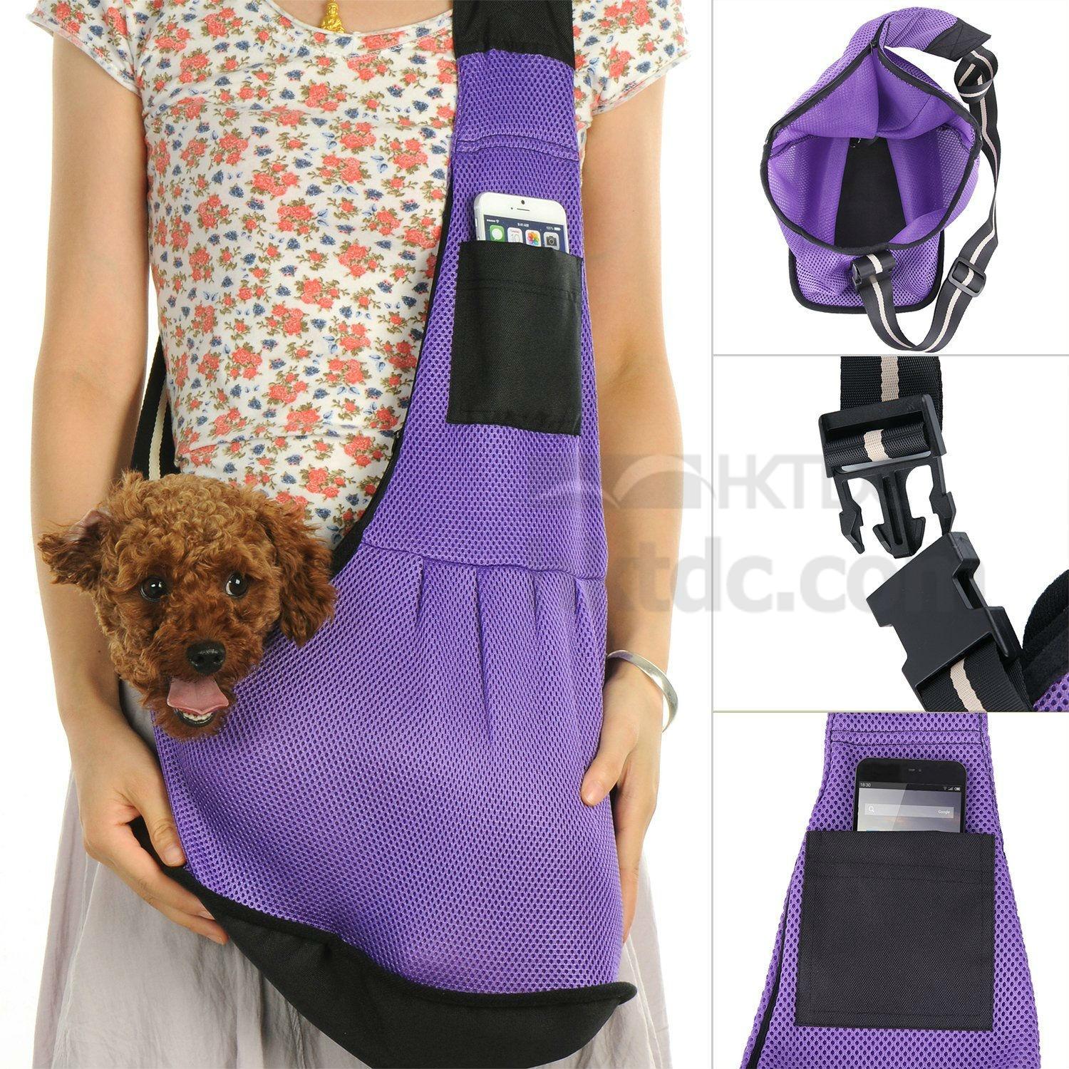 Keep your pet safe and well-behaved inside this nylon sling pet carrier. It is made of strong and sturdy nylon cloth materials and has a safety collar hook for extra security. This pet carrier is comfortable to carry with an adjustable strap and is great for small dogs and cats.