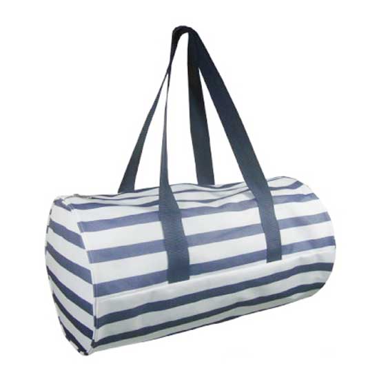 This highlighted travel bag is made of durable nylon. The navy stripes add a stylish accent to the travel bag. It features a zipped closure for easy access to the contents.