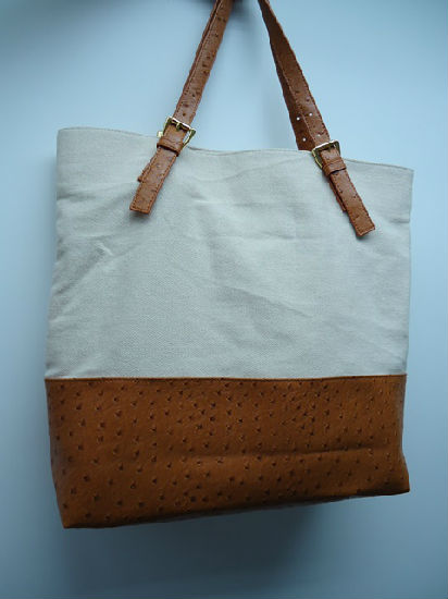 • Twill nylon with ostrich PVC tote bag.