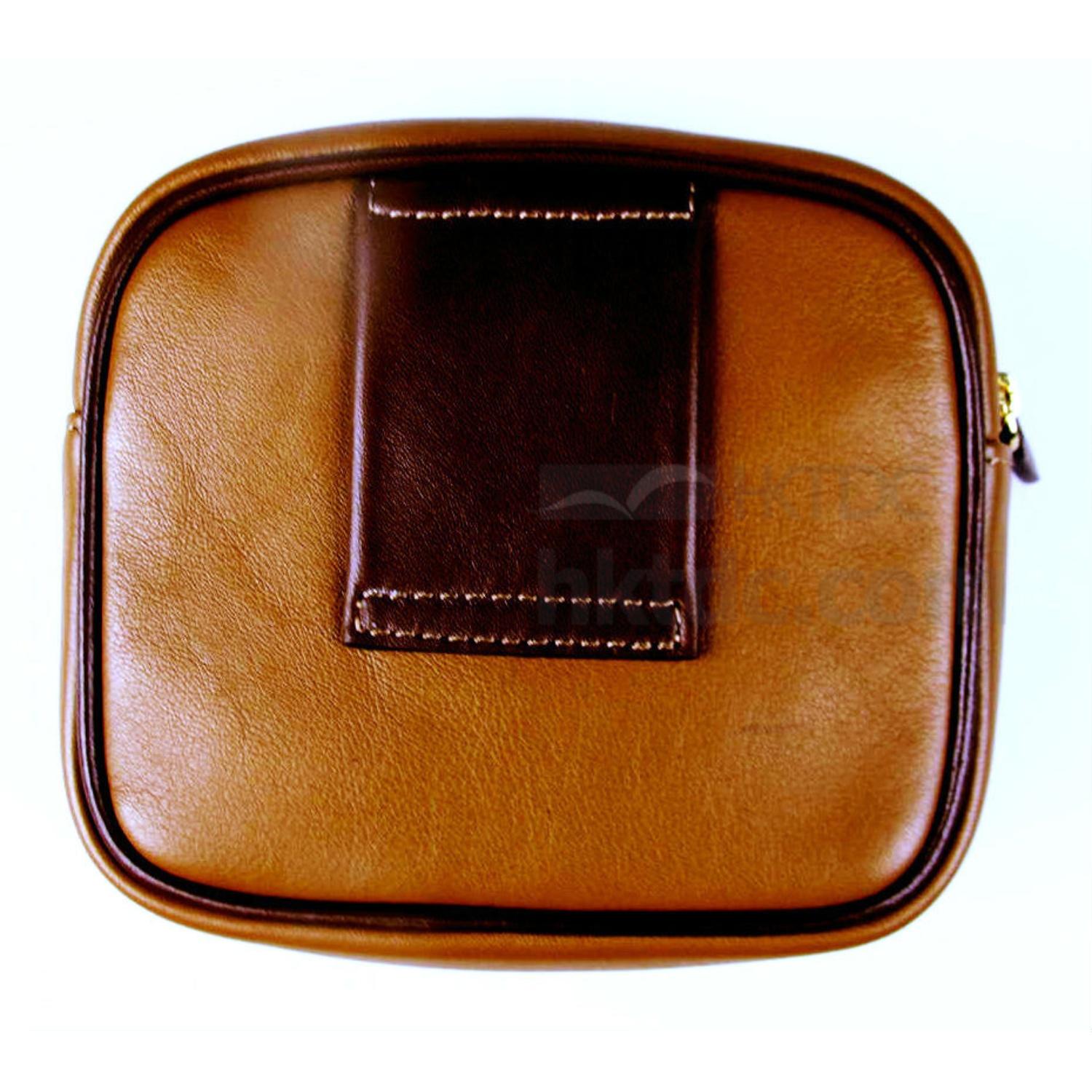 A convenient, practical waist bag ( carried through a belt) that carries your train ticket, cell phone, small wallet and loose change and more, owing to its suppleness of the buttery leather material.