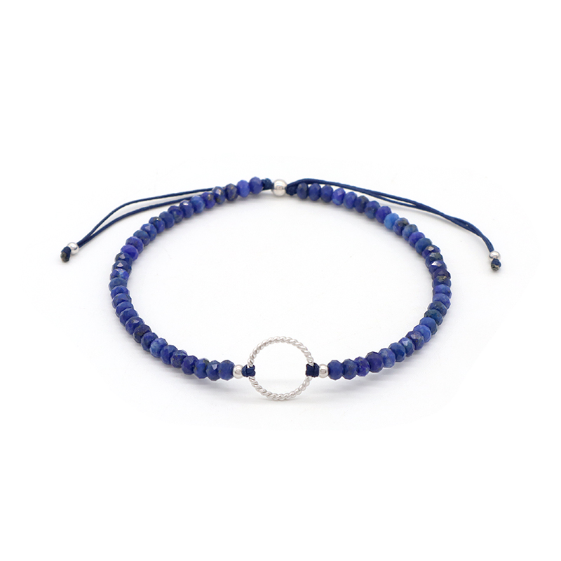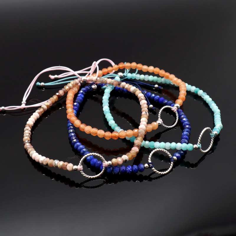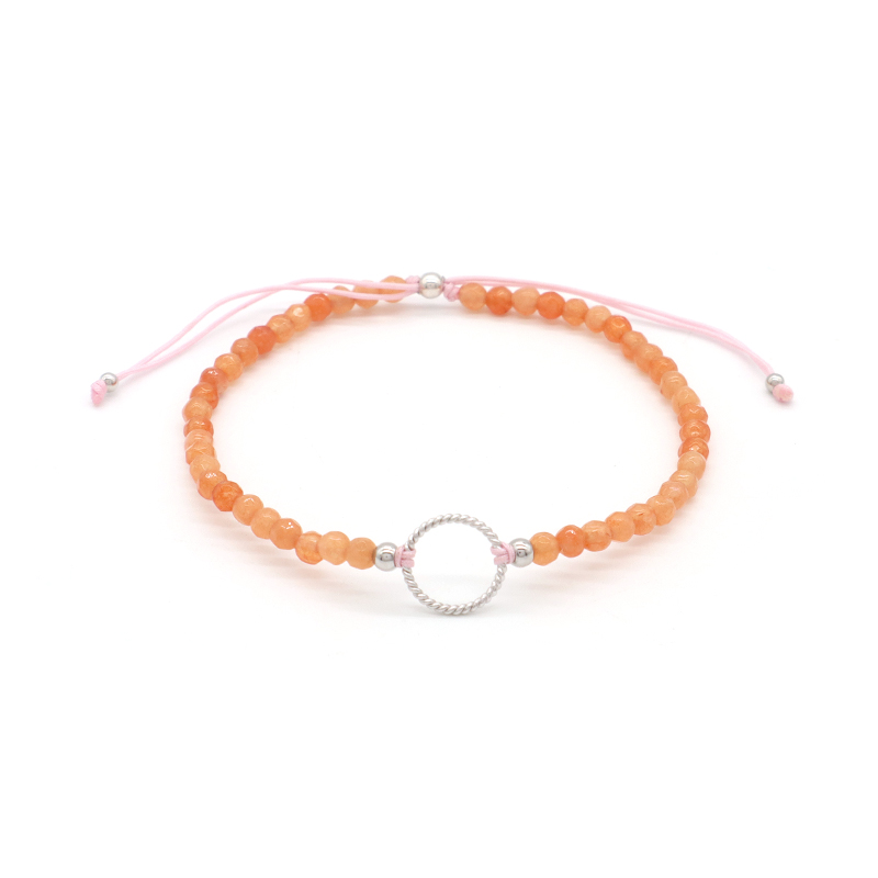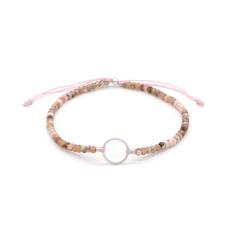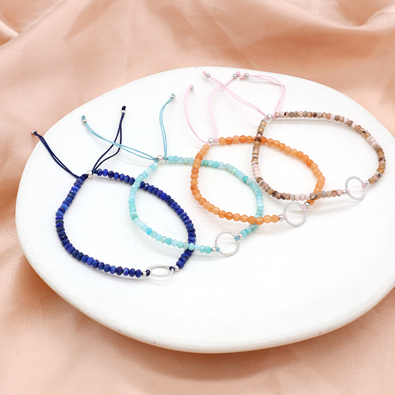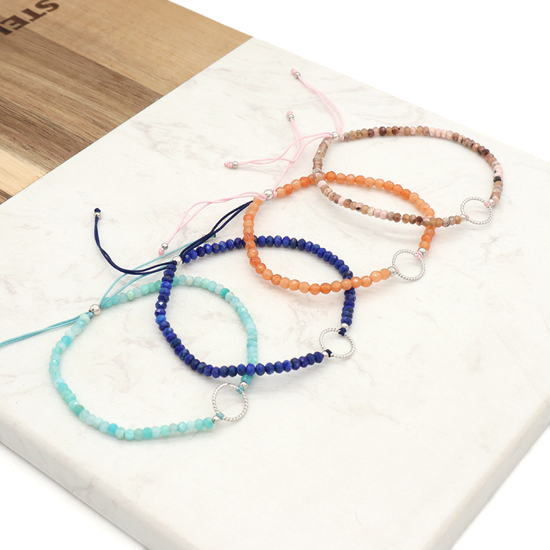 OEM Custom Gold Plated 925 Sterling Silver Charm Natural Stone Adjustable Macrame Handmade Bracelet