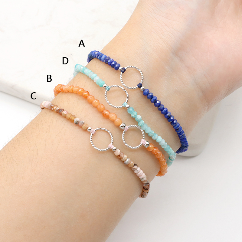Custom Gold Plated 925 Sterling Silver Pendant Natural Stone Bead Handmade Bracelet