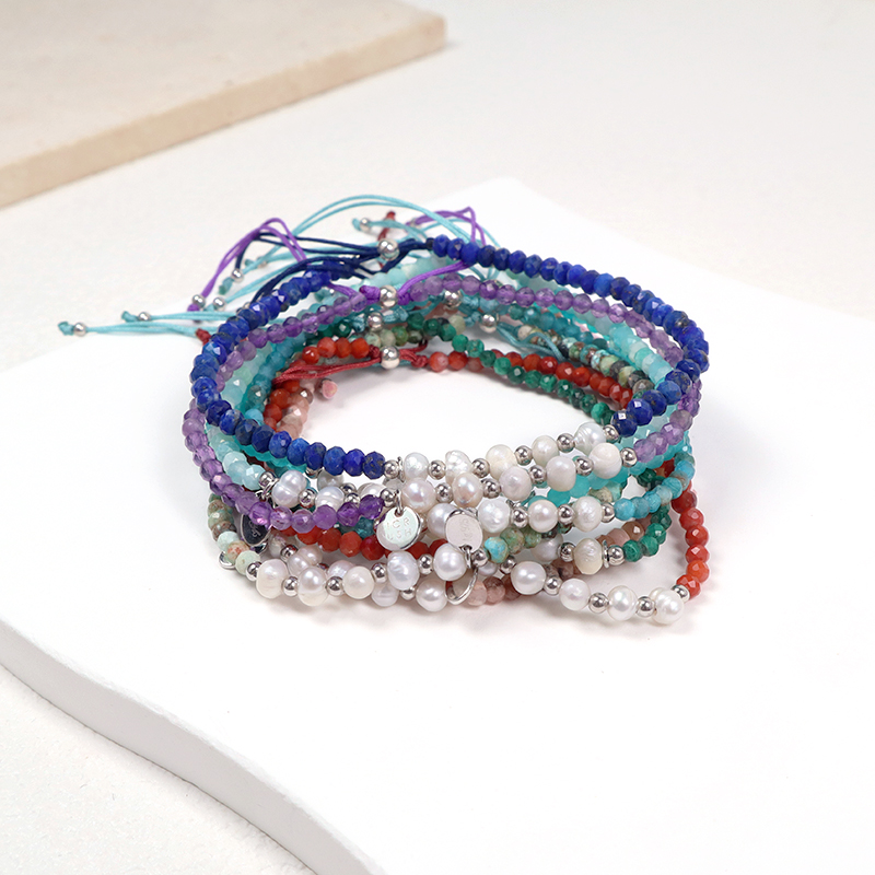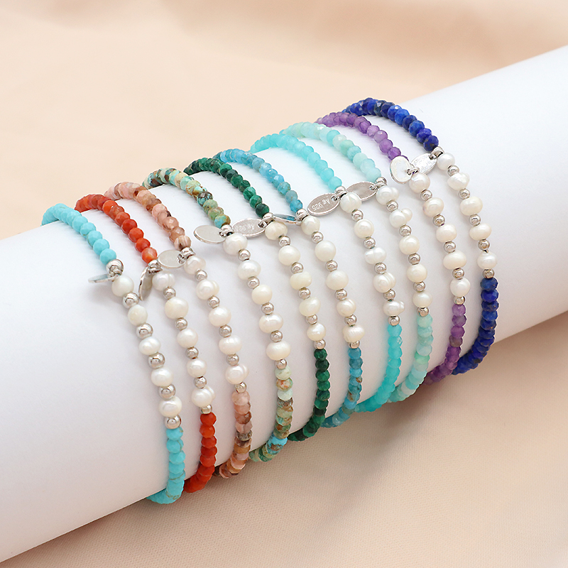 Natural Stone Beads + 925 Sterling Silver + Fresh Water Pearl