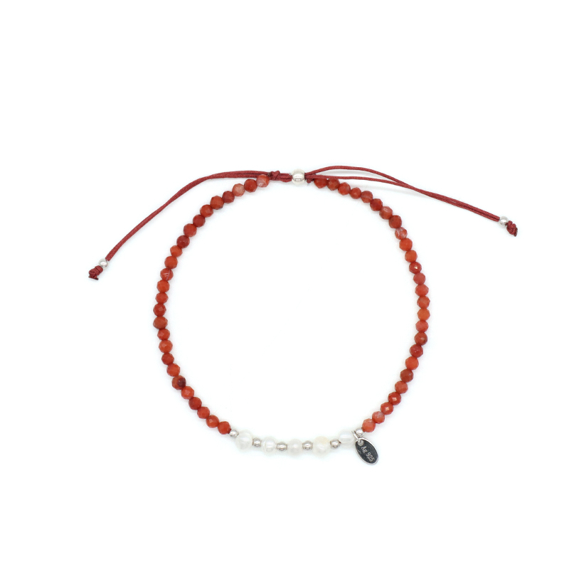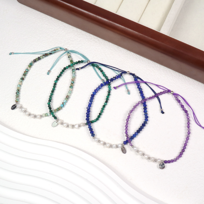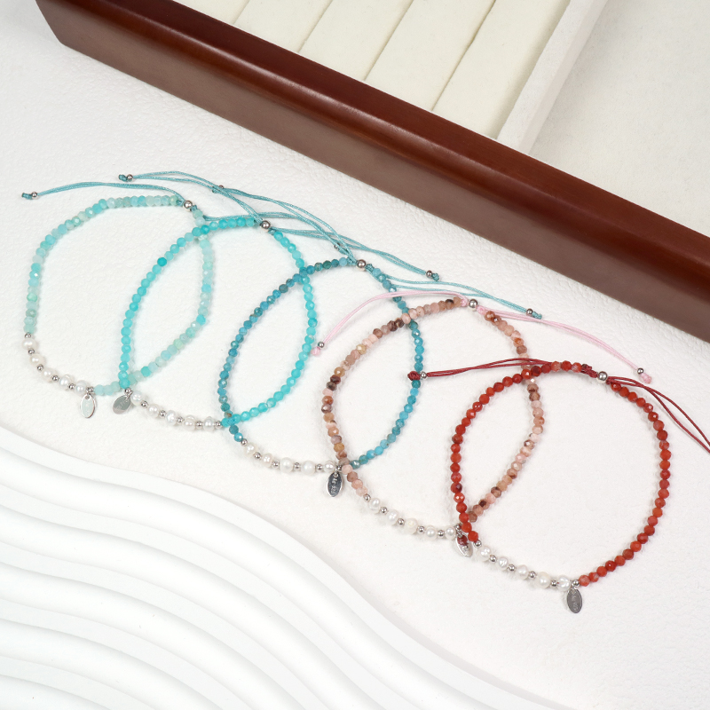 OEM Custom Macrame Adjustable 925 Sterling Silver Pendant Fresh Water Pearl Natural Stone Handmade Bracelet