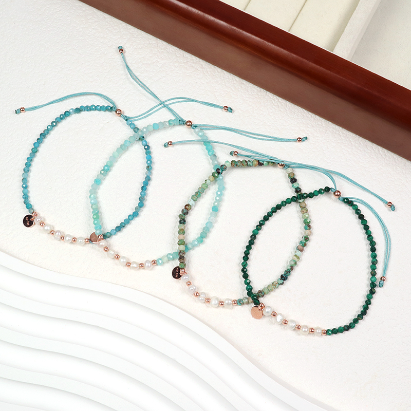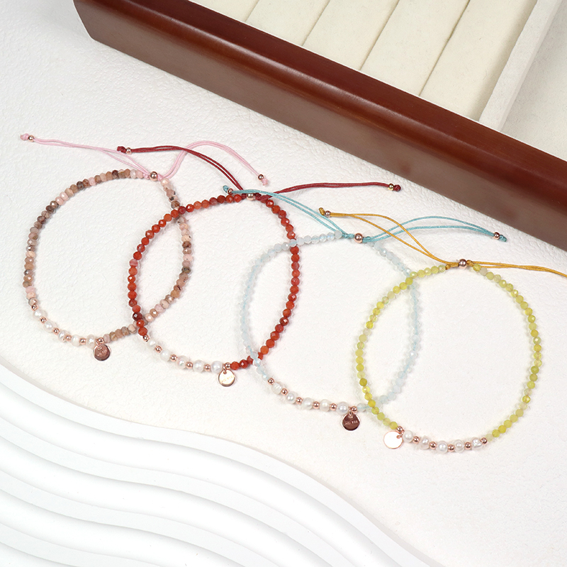 OEM Custom Macrame Adjustable Rose Gold 925 Sterling Silver Pendant Fresh Water Pearl Natural Stone Handmade Bracelet