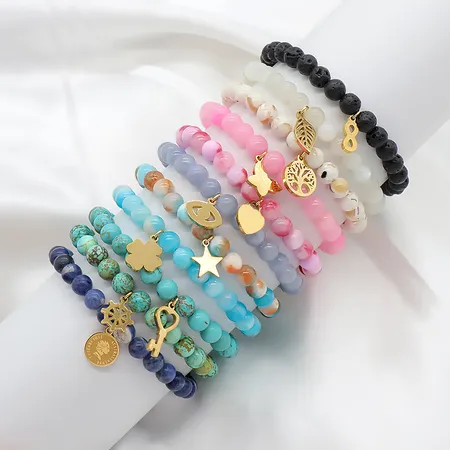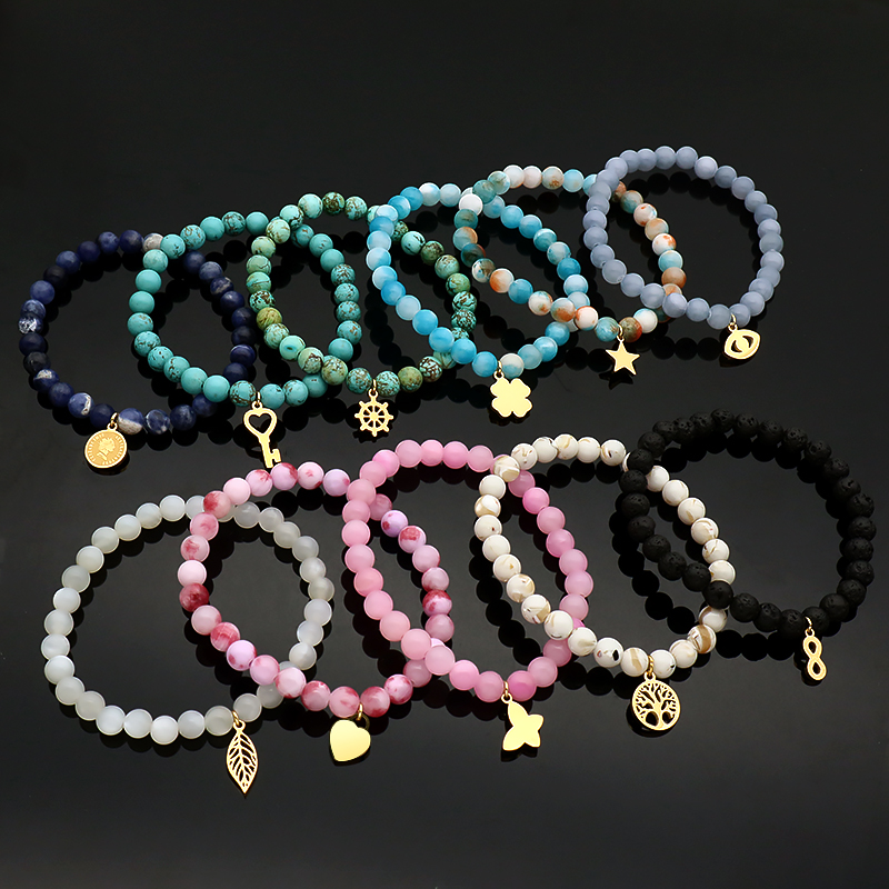 OEM Customized Handmade Stainless Steel Pendant Natural Stone Beads Bracelet