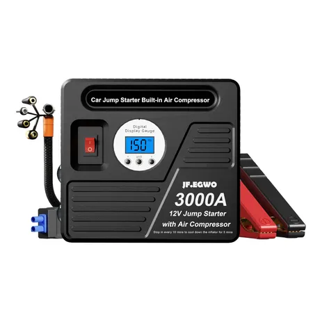 1. 12V battery car jump starter, 8 L gas and 10L Diesel. 38 jumpstarts per charge. 36 months of standby time.