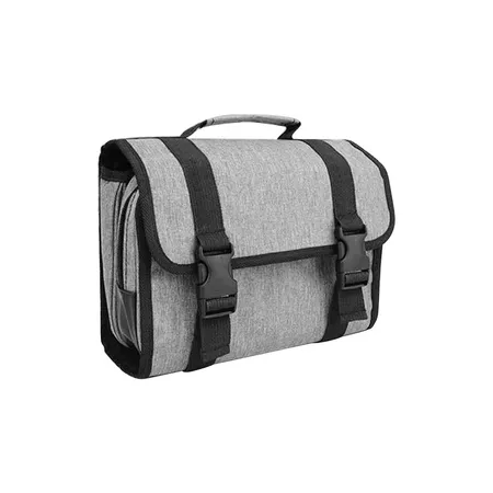 Provide secure and organized storage to cosmetics products with this oem produced cosmetic packaging bag. It has multiple compartments inside and has small pockets to keep things neat. This cosmetic bag has a buckled flap for closure and has a handle for comfortable carrying.
