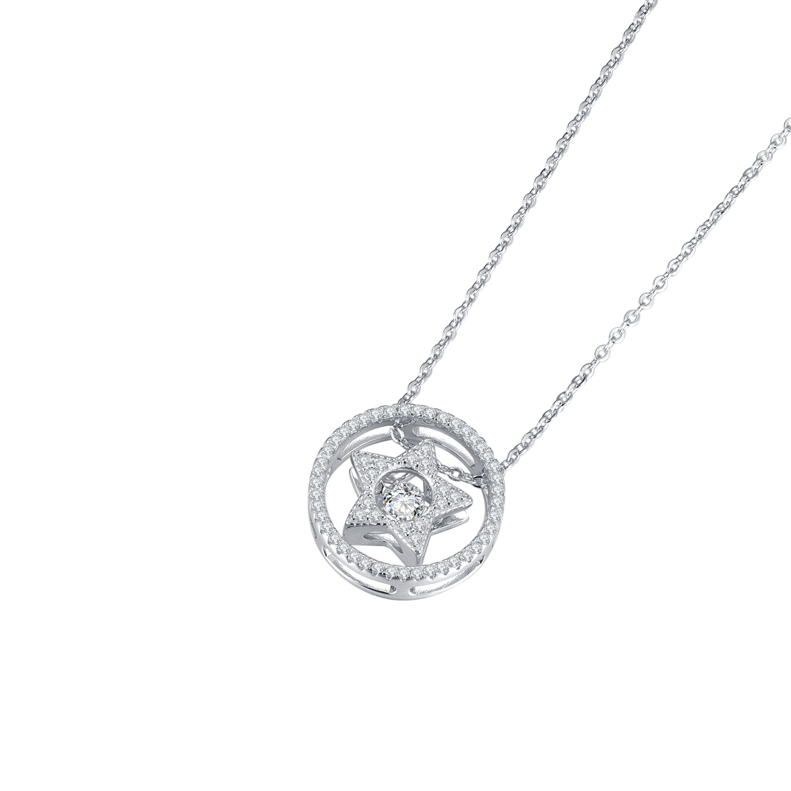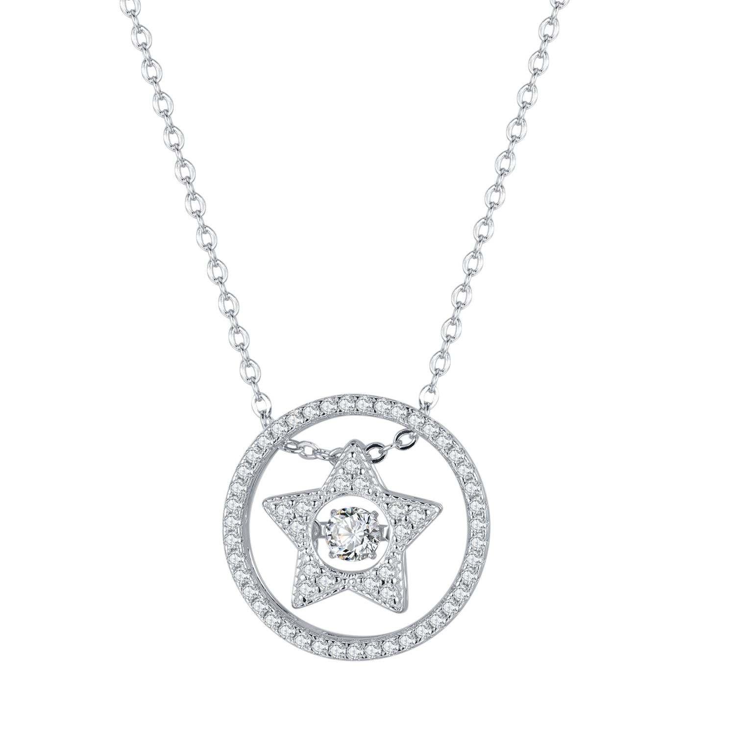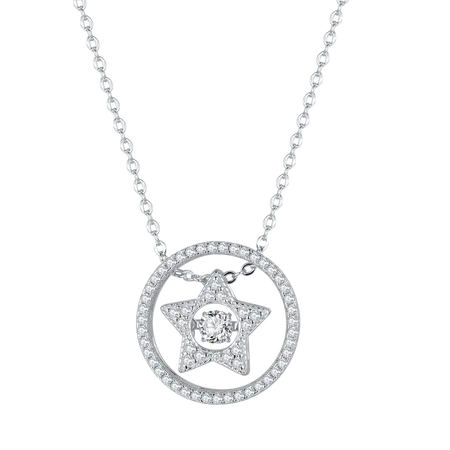 Imported from Japan, exclusive "Dancing Stone" suspends in a 3D inlay with professional craftsmanship. The unique double-arm suspension design allows the pendant to move and sparkle rapidly, resembling a dancing motion.