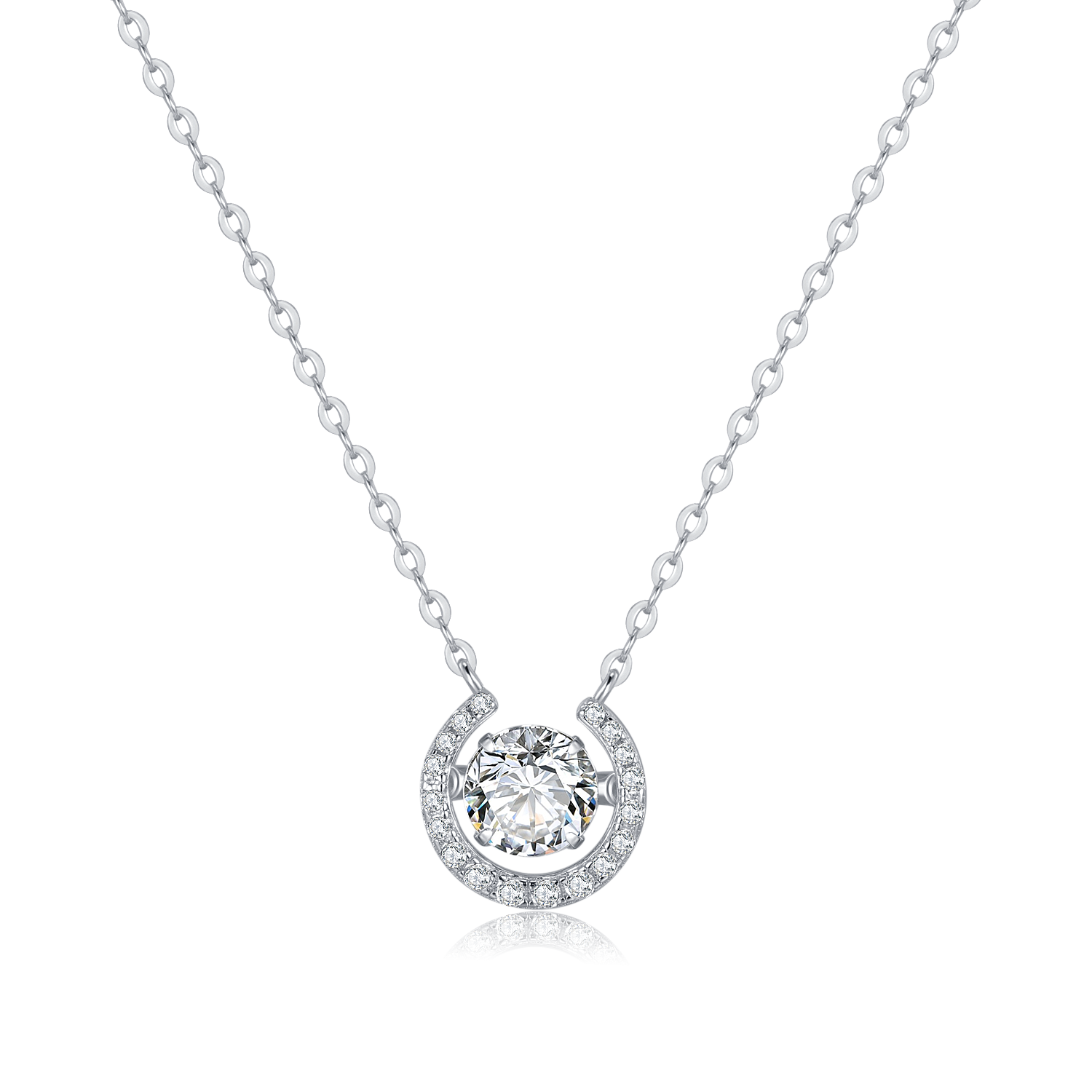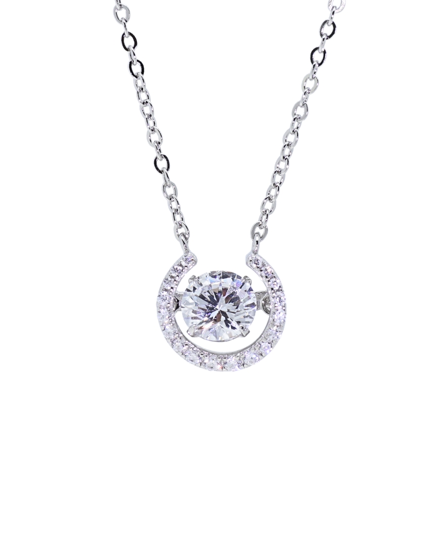 Imported from Japan, exclusive "Dancing Stone" suspends in a 3D inlay with professional craftsmanship. The unique double-arm suspension design allows the pendant to move and sparkle rapidly, resembling a dancing motion.