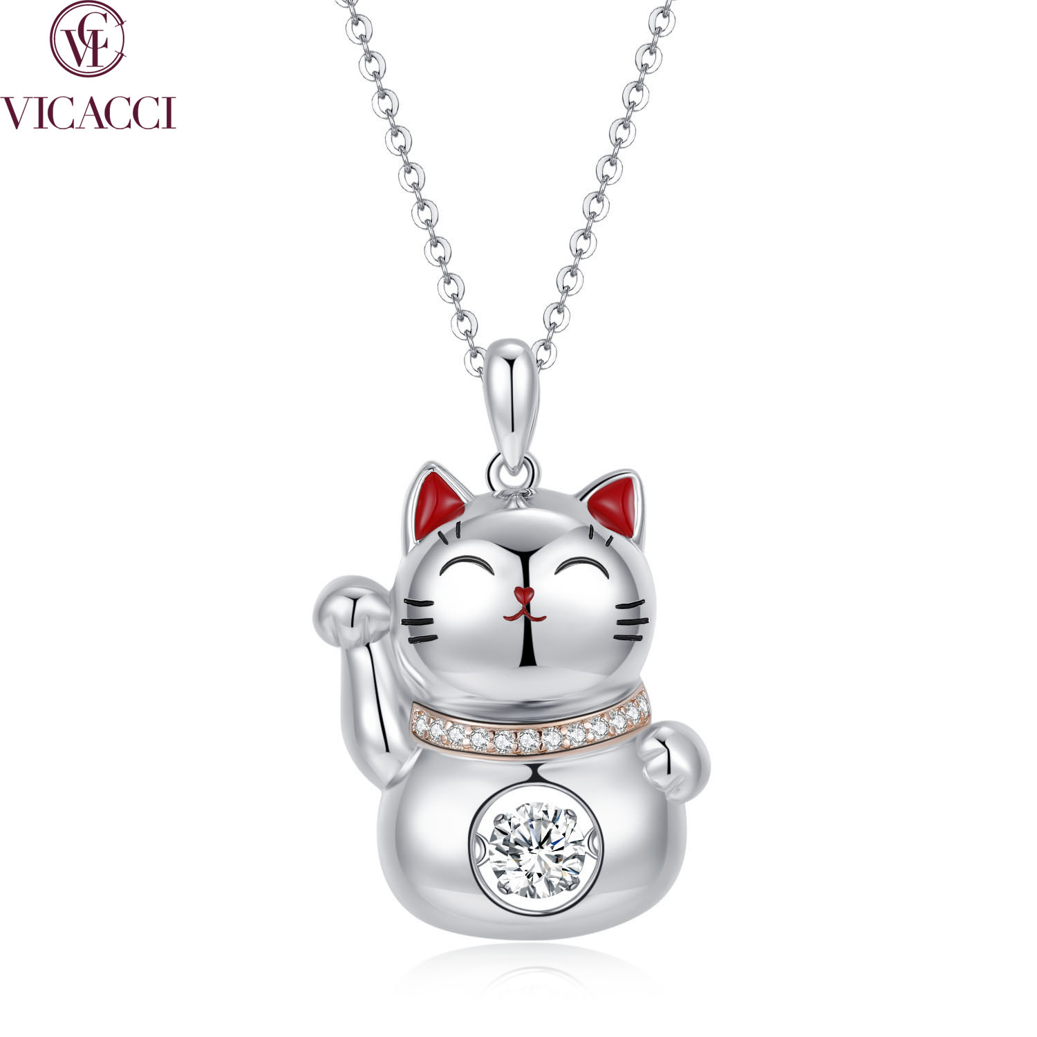 Imported from Japan, exclusive "Dancing Stone" suspends in a 3D inlay with professional craftsmanship. The unique double-arm suspension design allows the pendant to move and sparkle rapidly, resembling a dancing motion.