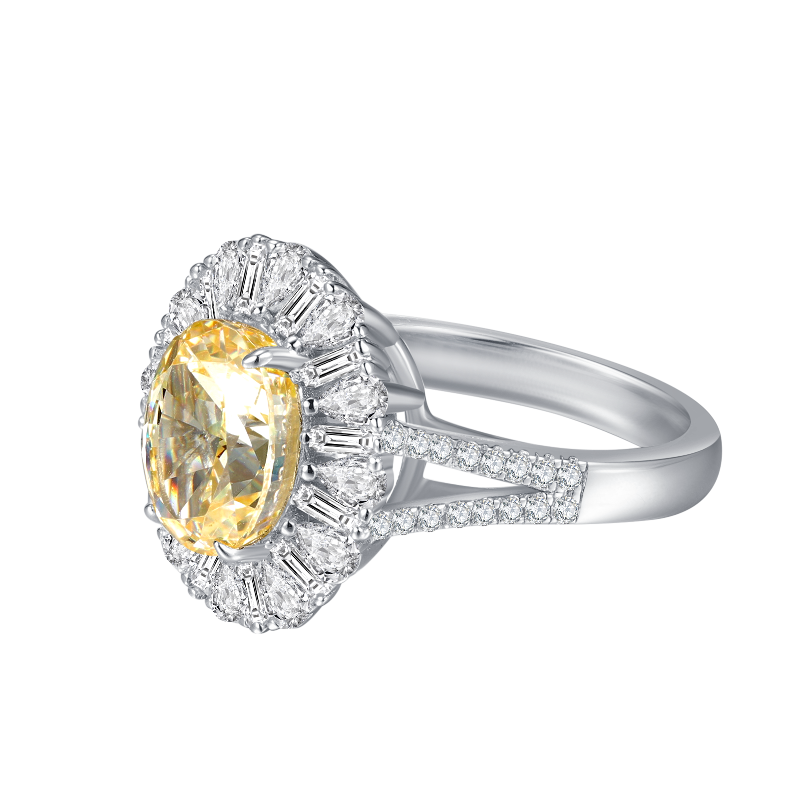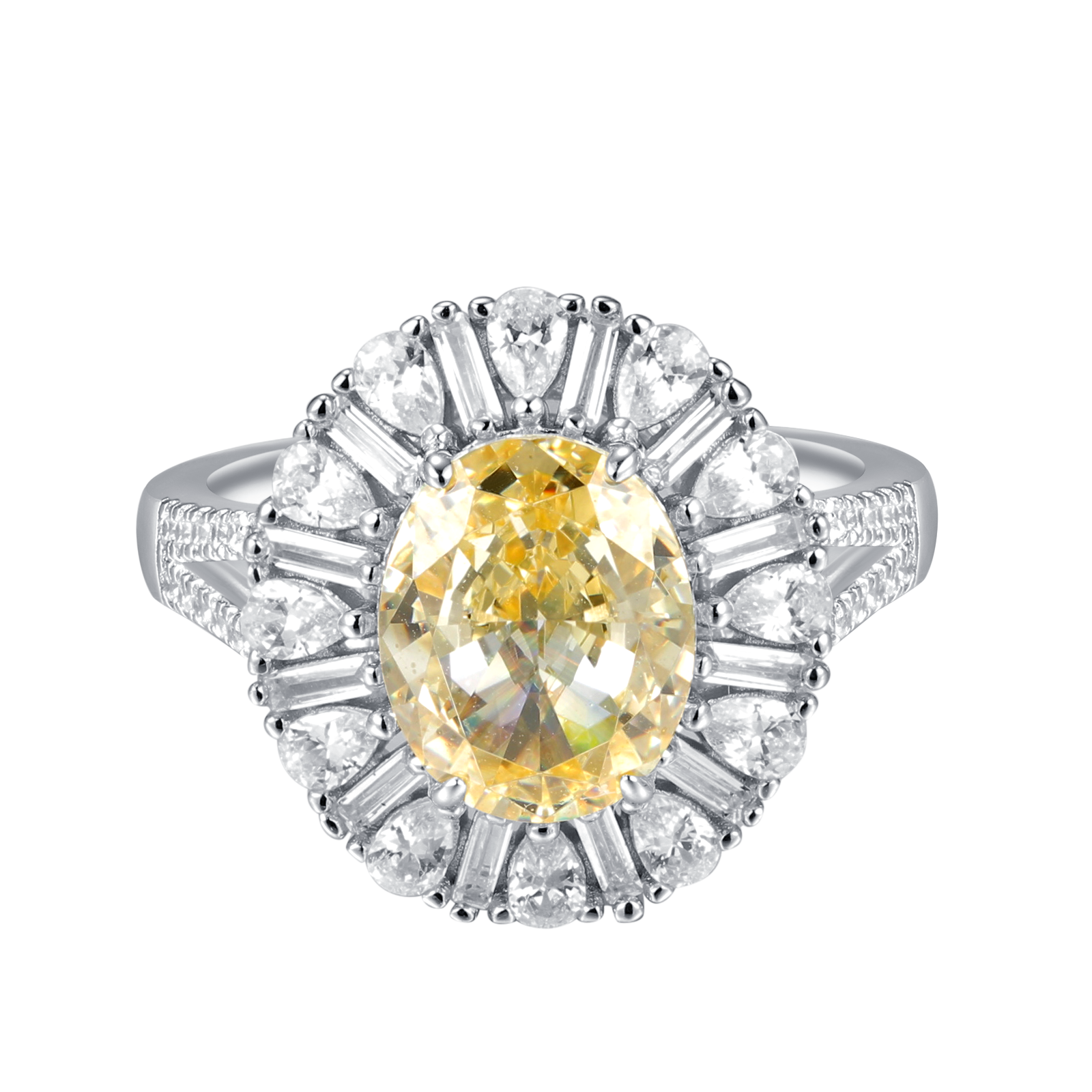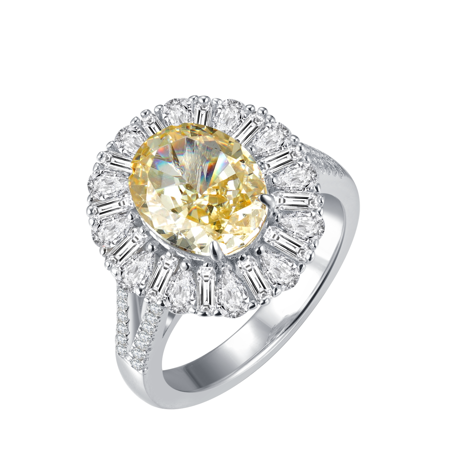 Showcases expert craftsmanship with a stunning gemstone and a meticulously designed halo of diamonds.