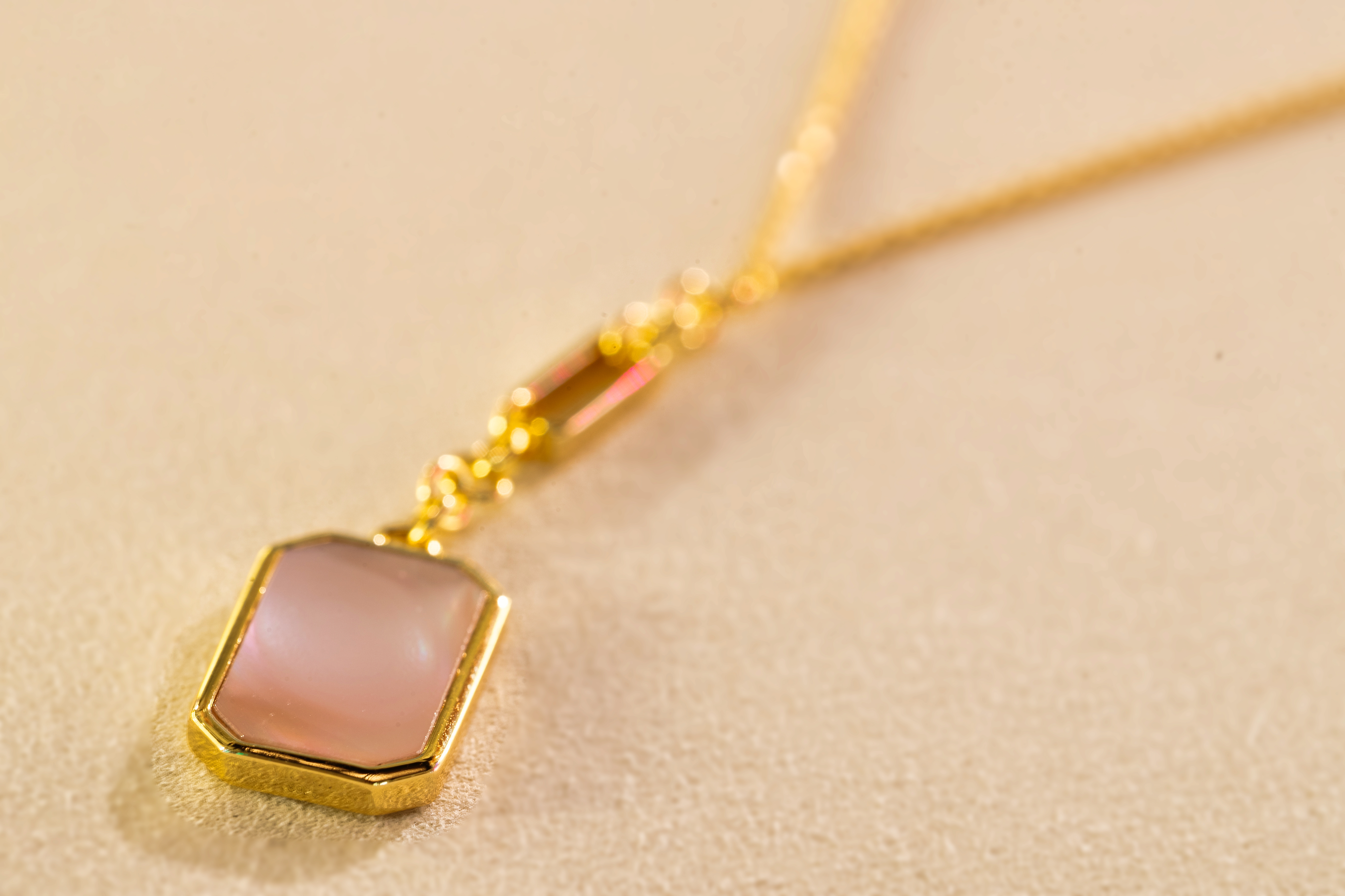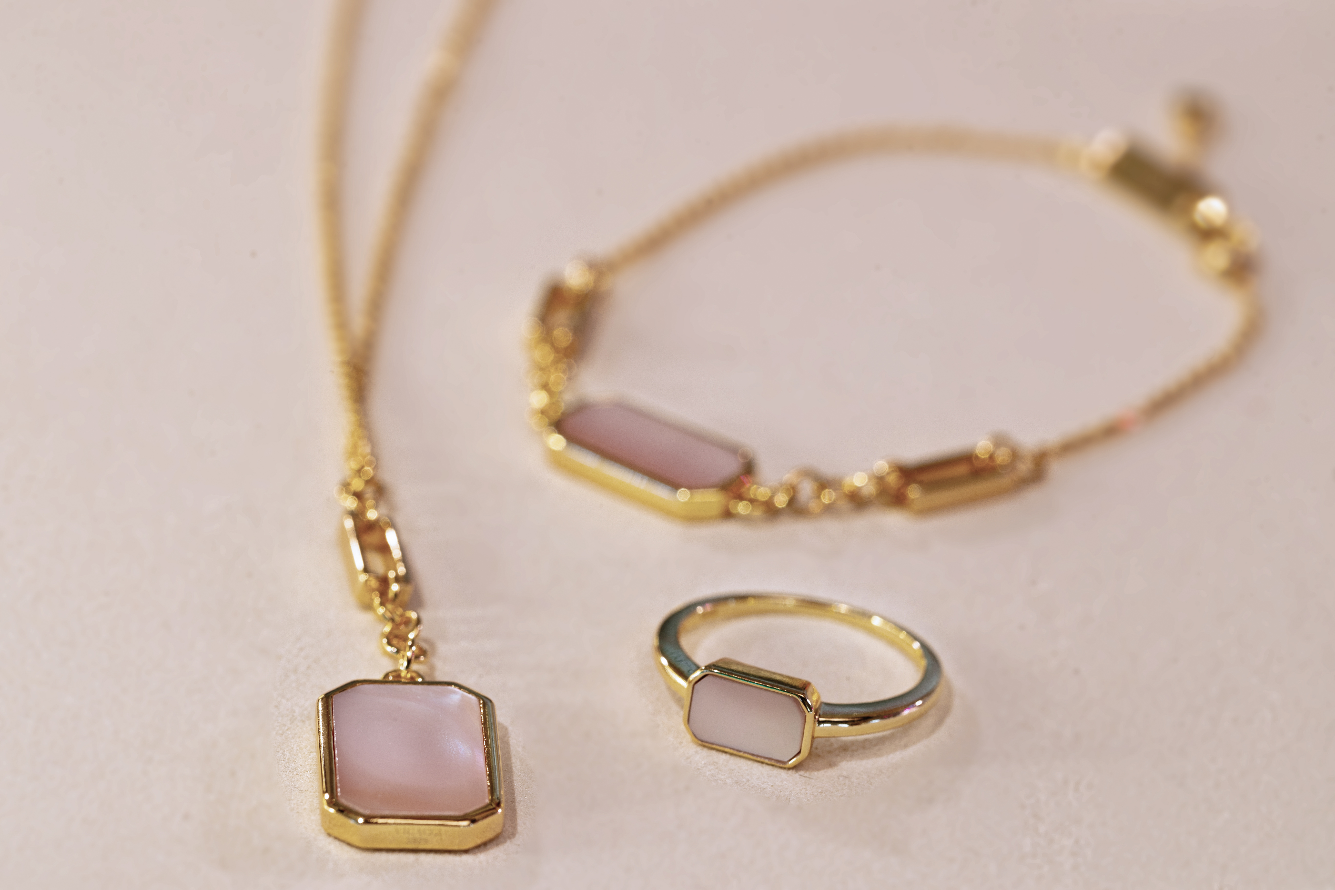 The entire series draws inspiration from the uniqueness of Fritillaria, showcasing its distinctive color and texture that convey a rich luster and depth. The design utilizes the color gradients and light-and-shadow effects of Fritillaria, while precise cutting and arrangement create circular shapes characteristic of the collection. The upward-inverted triangle design adds a unique geometric visual effect, enhancing the elegant natural beauty of each piece.