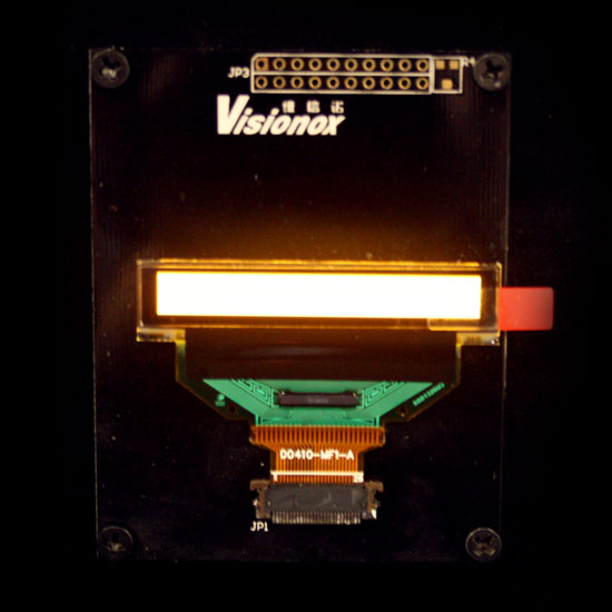 Featured here is an OLED display of white color. Its high-quality design and production guarantee good reliability. OLED displays of other colors and specifications are also available.