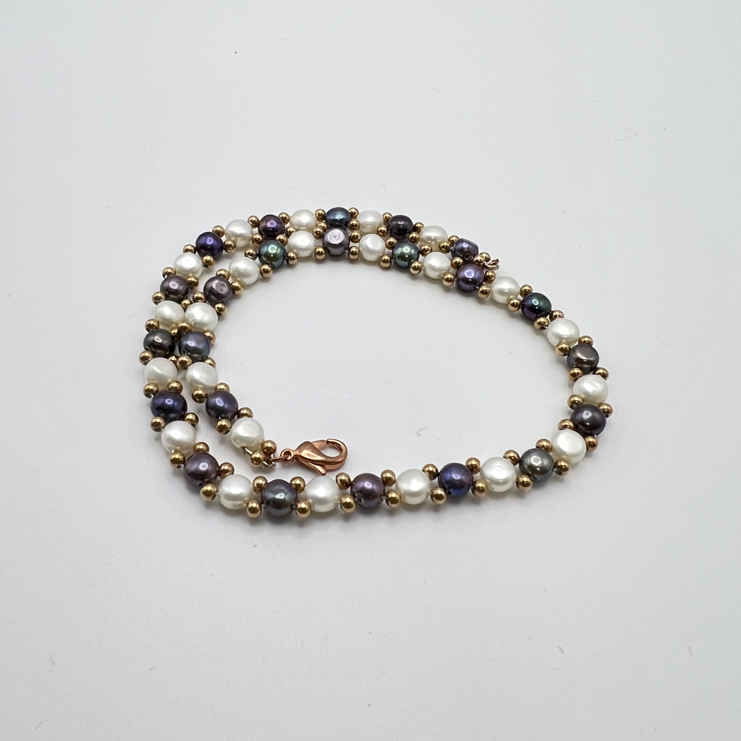 NECKLACES, WHITE AND BLACK, STEEL BEADS.40CM