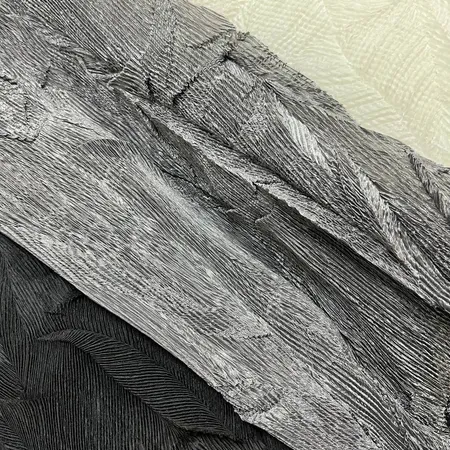High quality organza with voluminous relief. Pleasant to the touch, translucent, lightweight. The surface of the material is chaotically stitched with stitched relief with voluminous triangles;