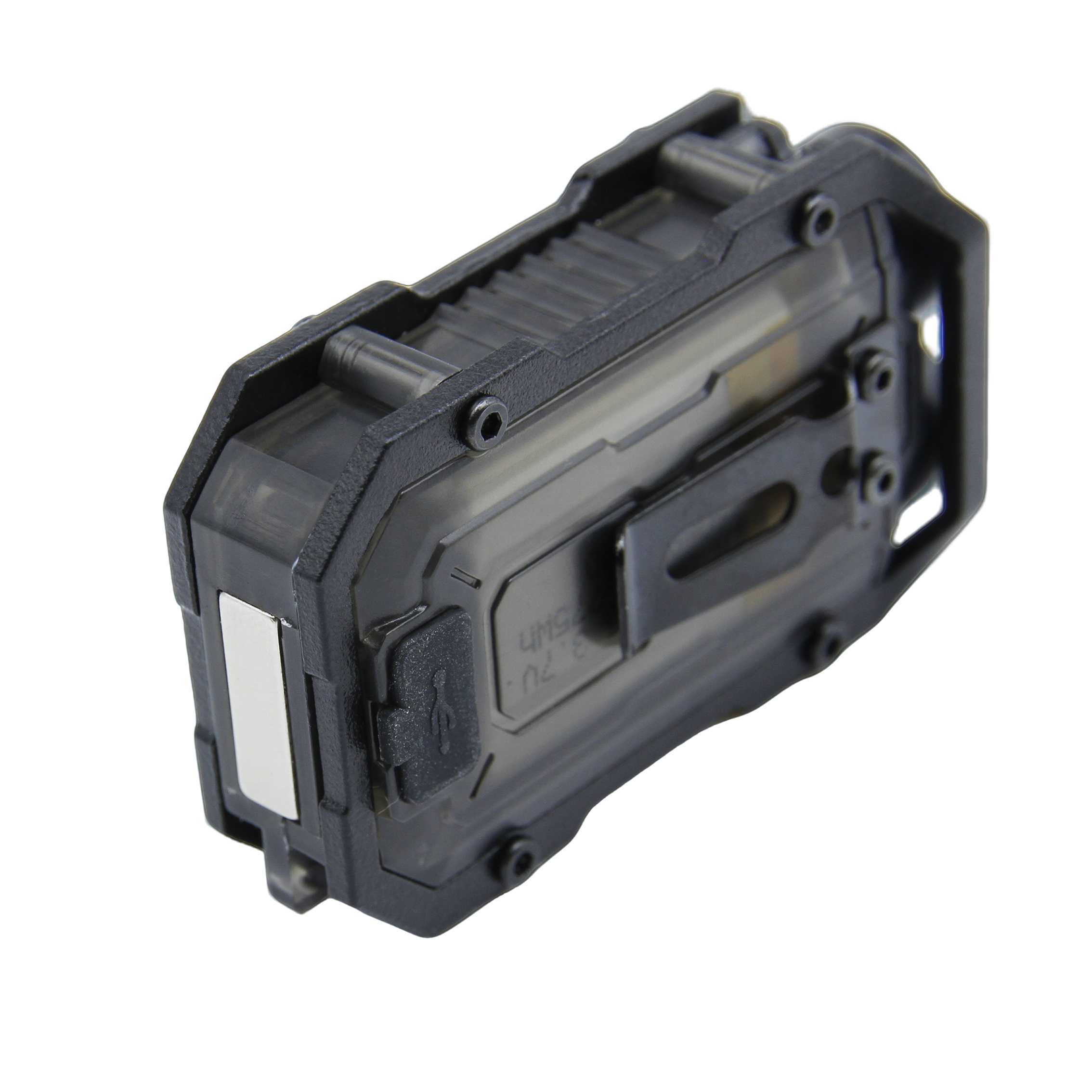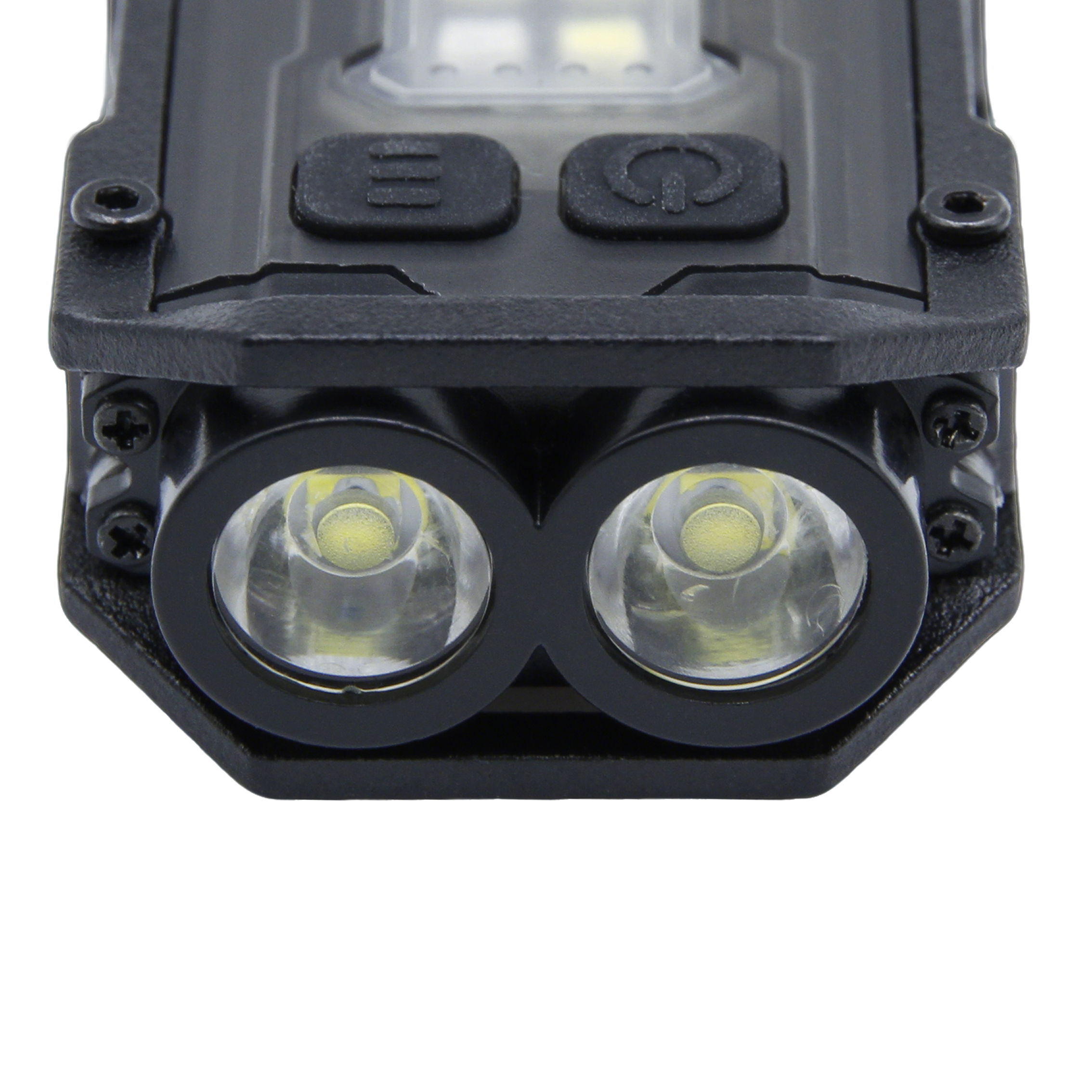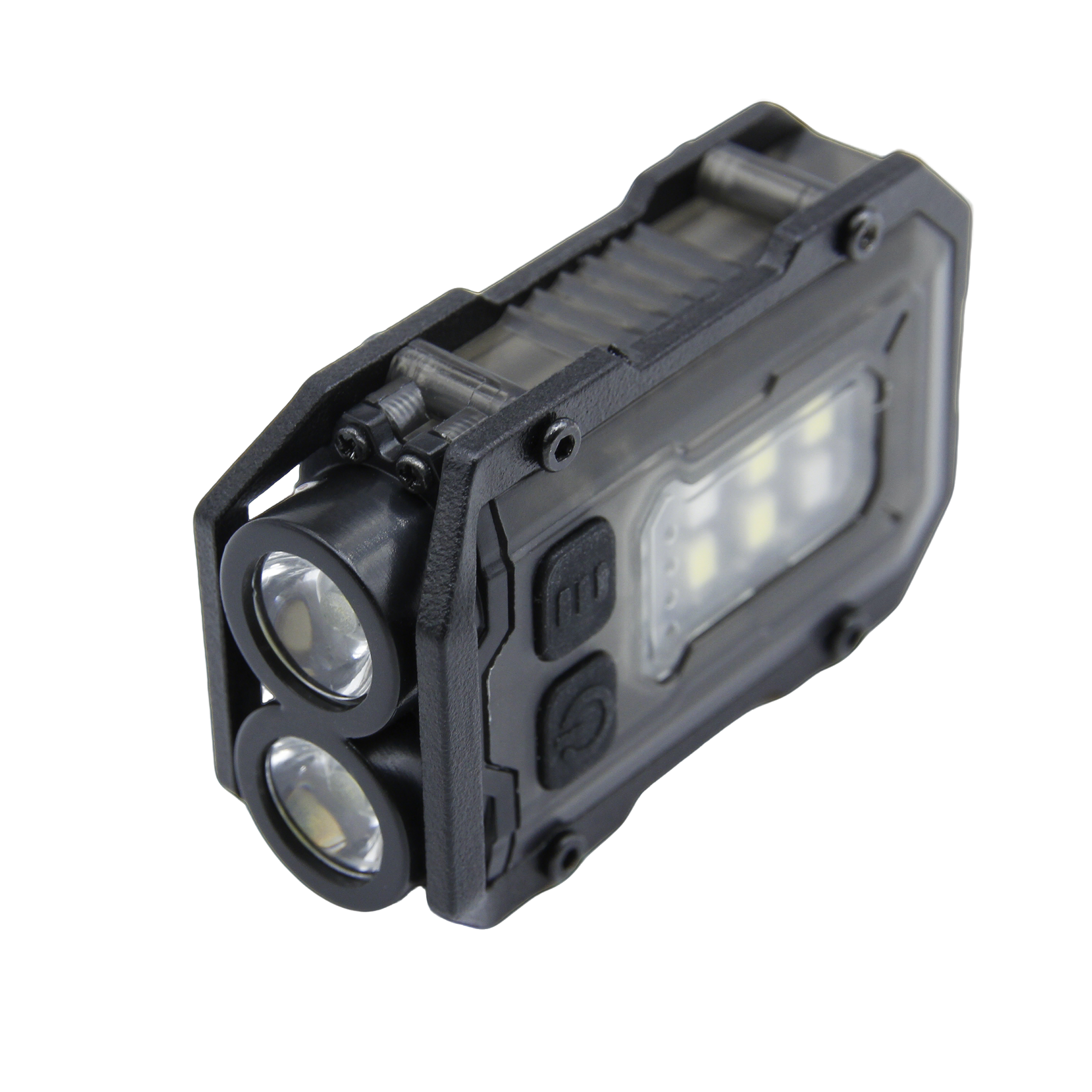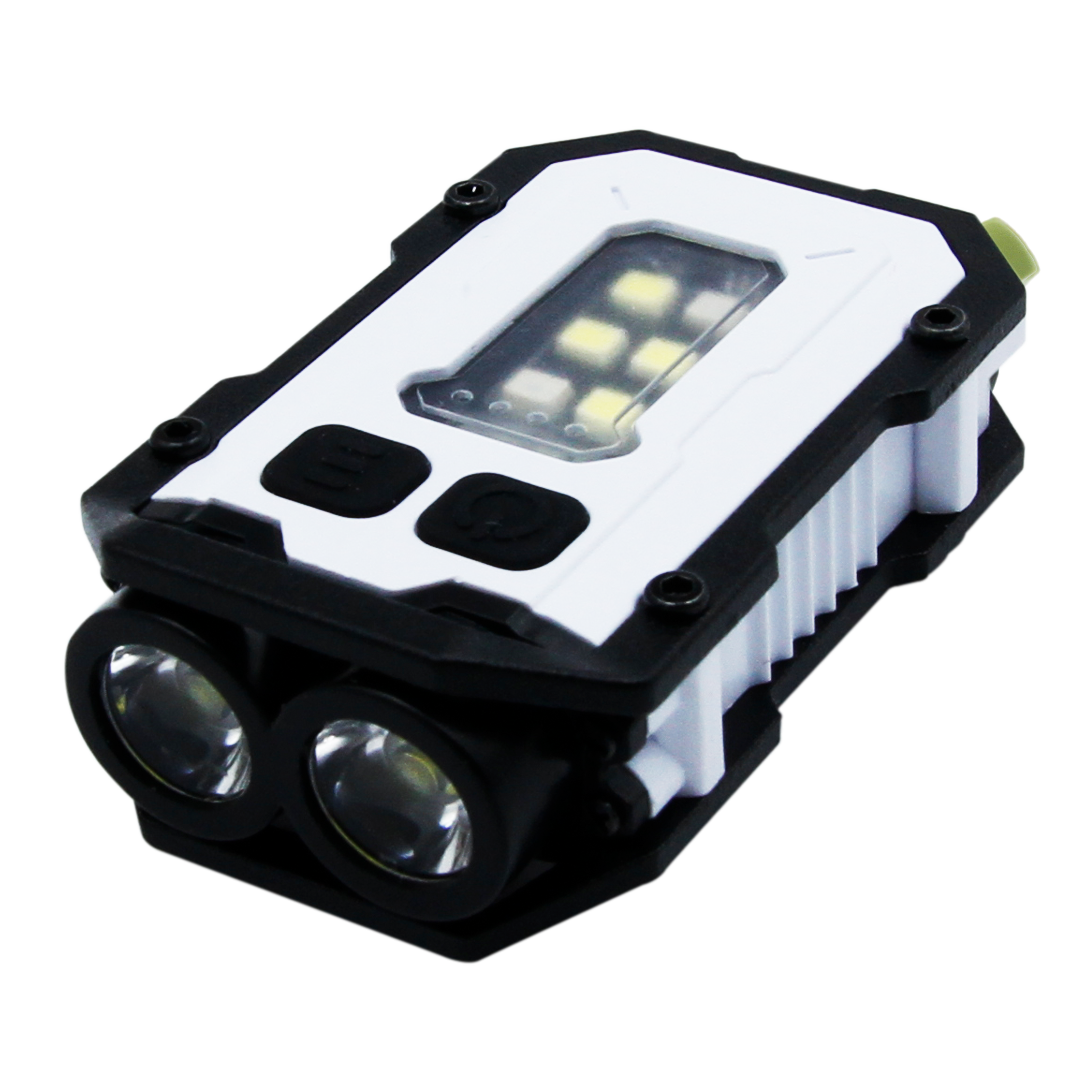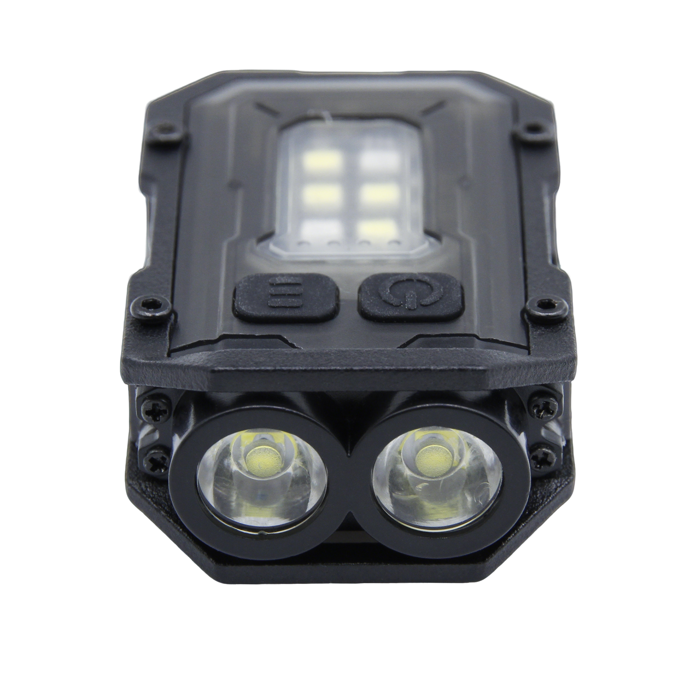 Left button: Side light 4 pcs COB high> Side light COB Low > Red LED > Red blue flash; Low press for on/off, Single press for change mode;