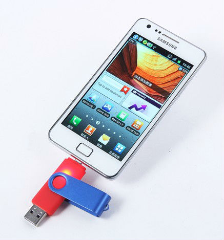 Mobile phone U disk and U disk size (58mm x 19.2mm x 7.9MM). Its appearance is very delicate, metal rotation, up to 10 colors (according to the customer OEM).