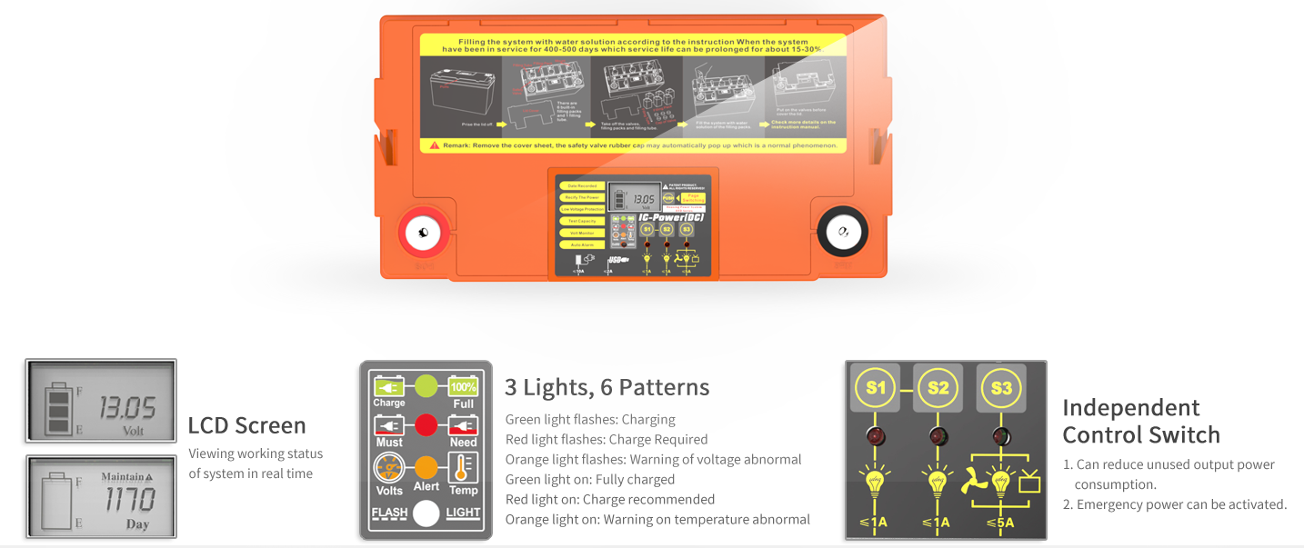 2. Controlling the input and output currents, protect the battery from over charging and over discharging and extending service life.