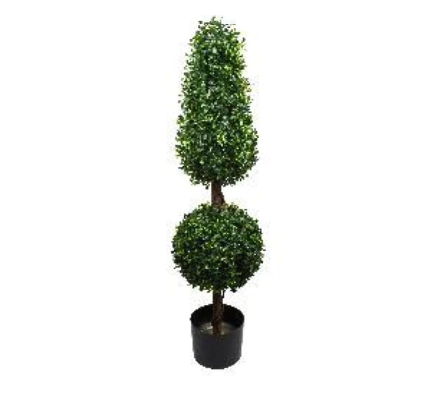 The oasis outdoor set of 2 artificial plant tree's on a plastic base.
