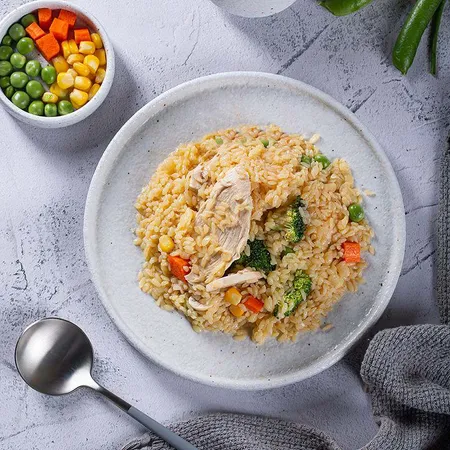 Oat Konjac Rice (Wet Rice) is a low-calorie, fiber-rich alternative to traditional rice, combining the benefits of oats and konjac. High fiber content helps increase satiety, which makes it easier to control weight. Rich in dietary fiber, which aids in digestion and promotes intestinal health.