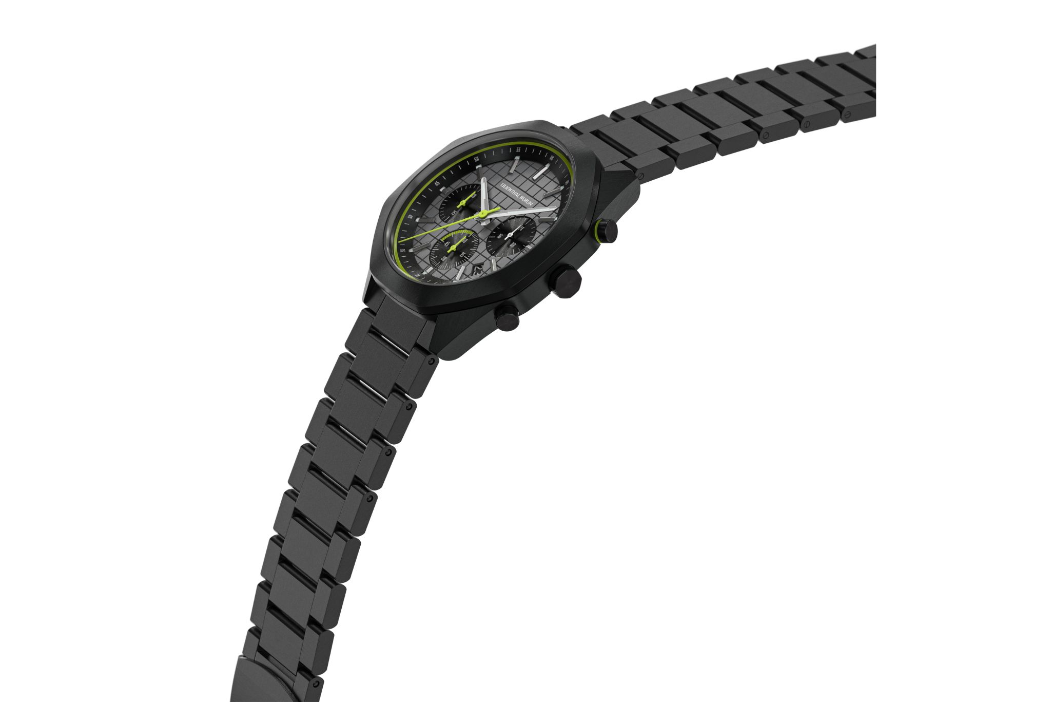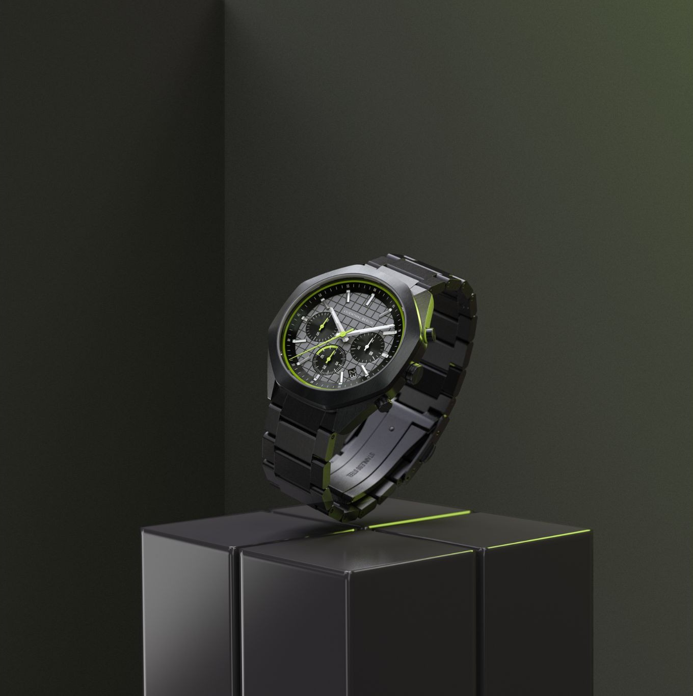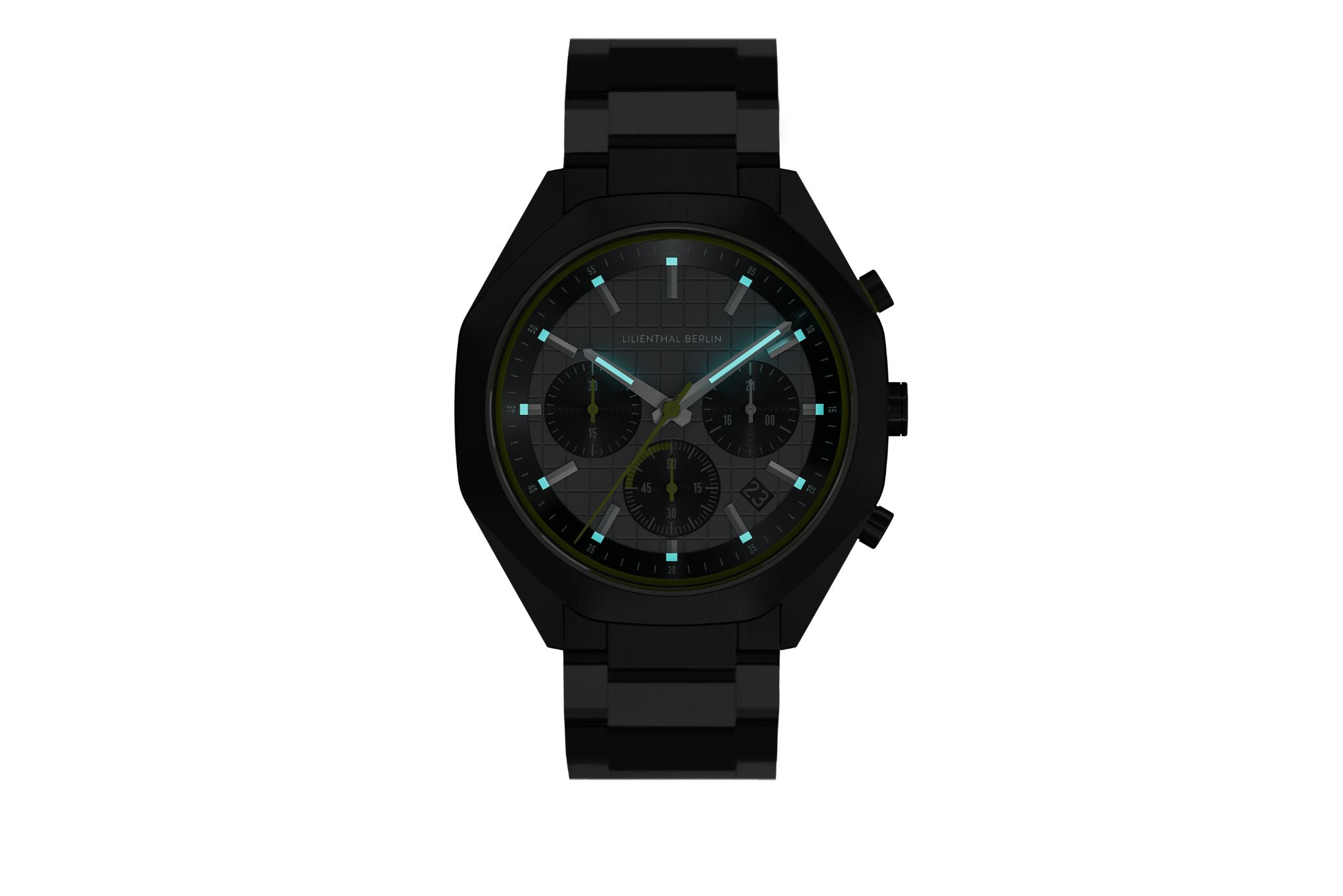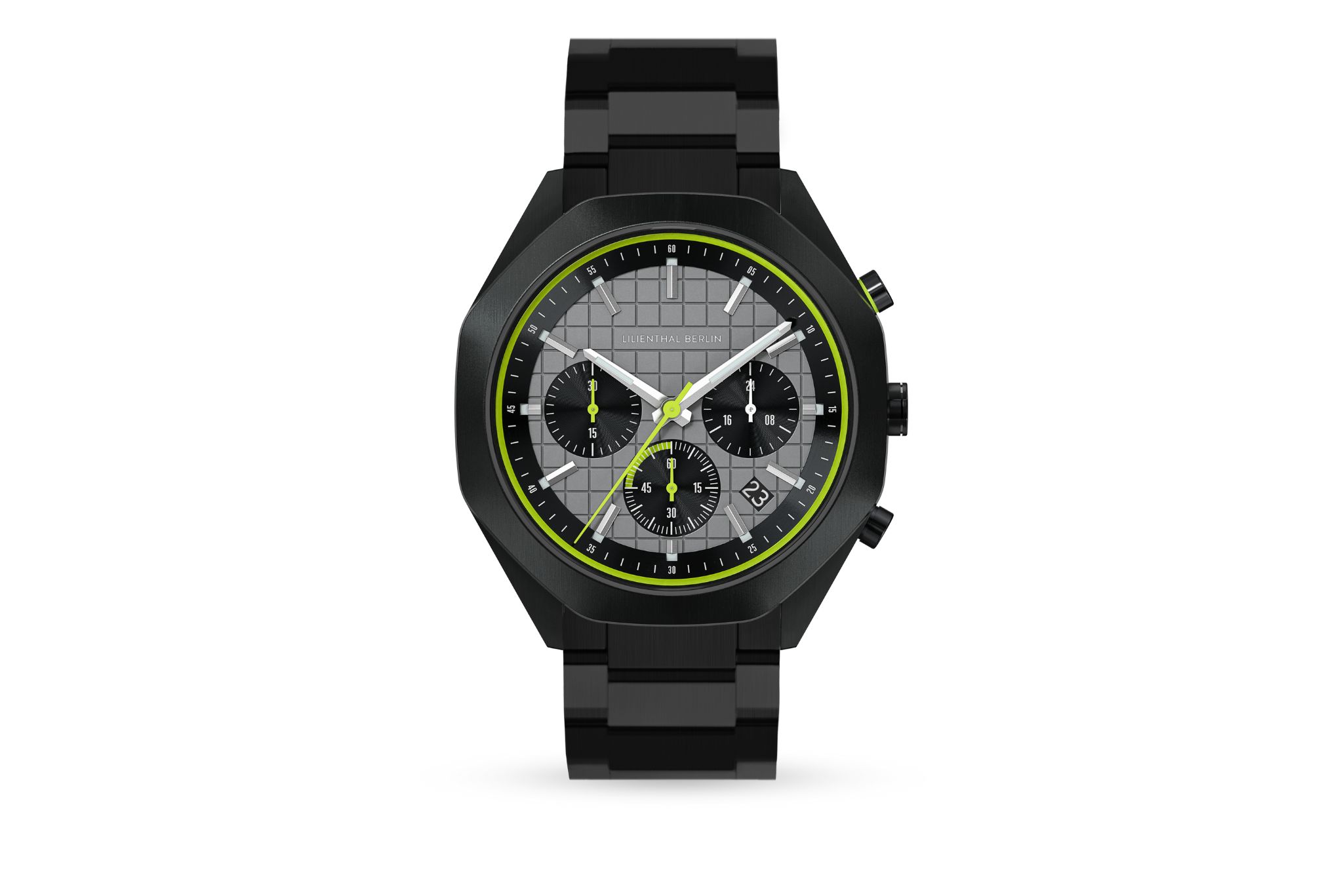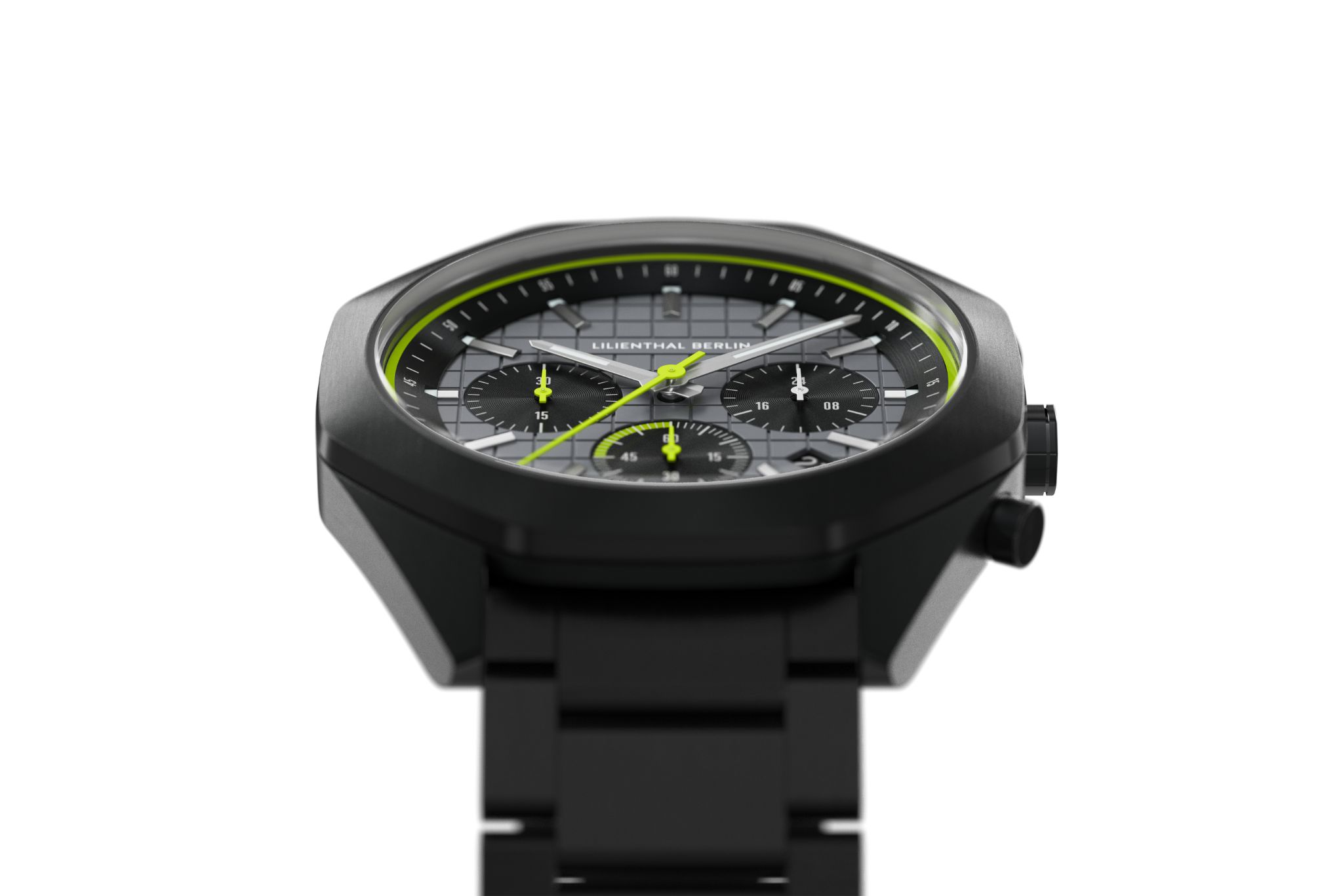 The shape of the case, the clearly structured dial, the color-accentuated chrono hands: The design follows its very own rules.
