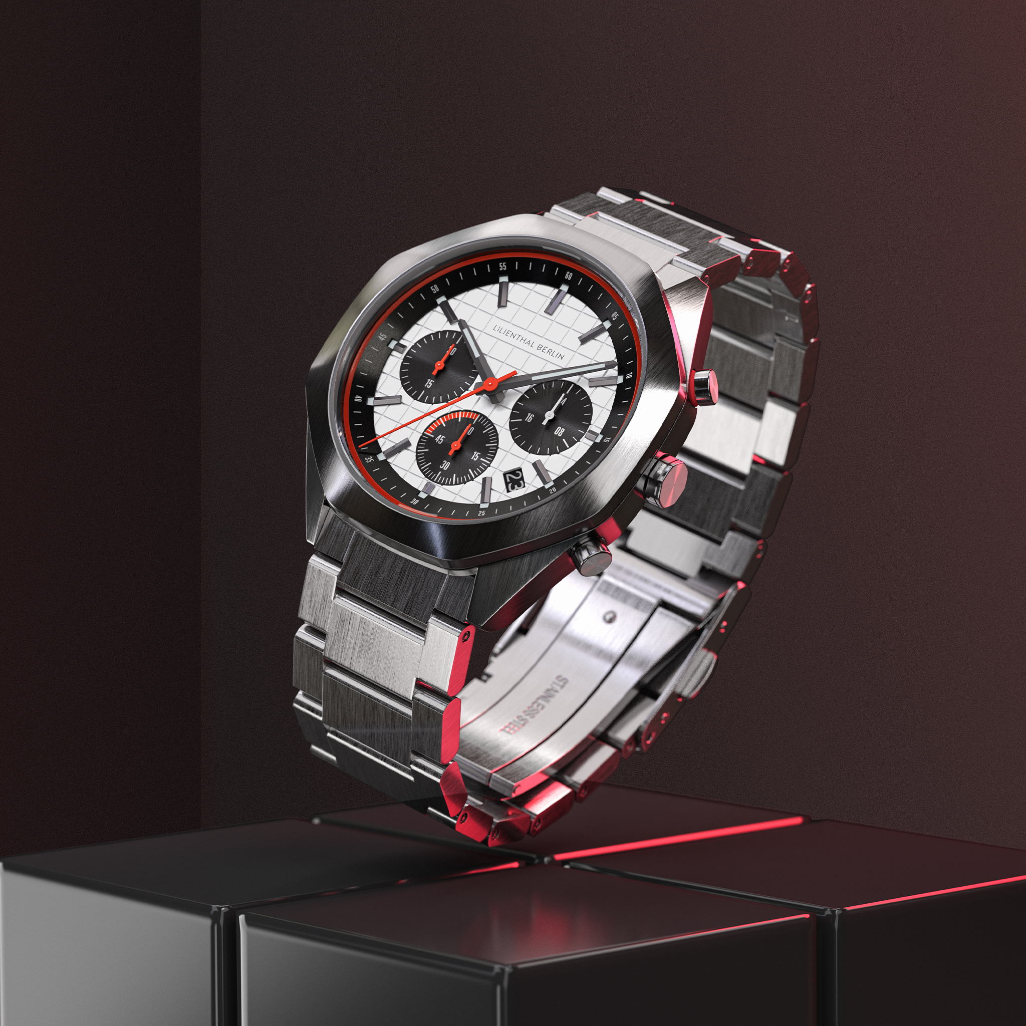 The shape of the case, the clearly structured dial, the color-accentuated chrono hands: The design follows its very own rules.