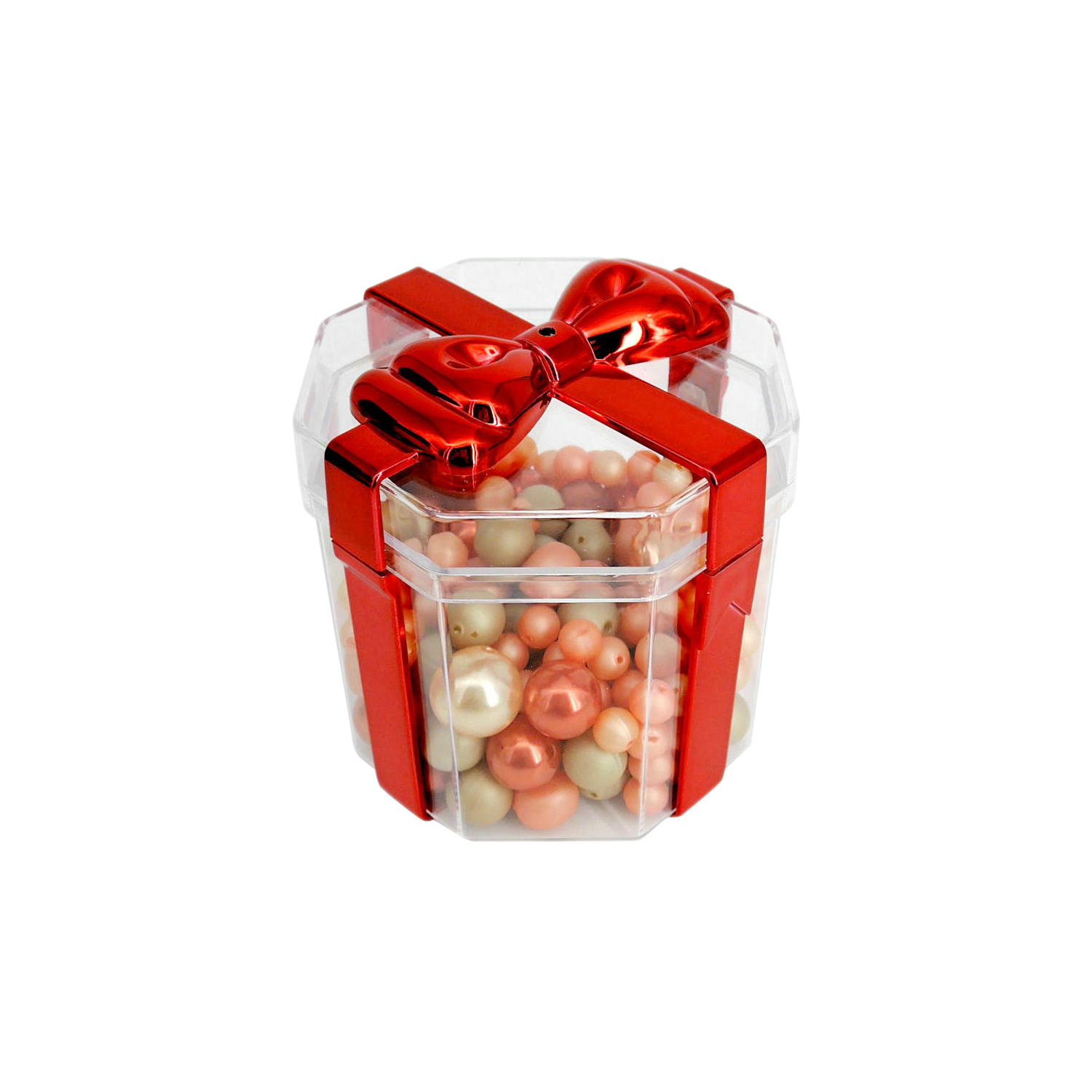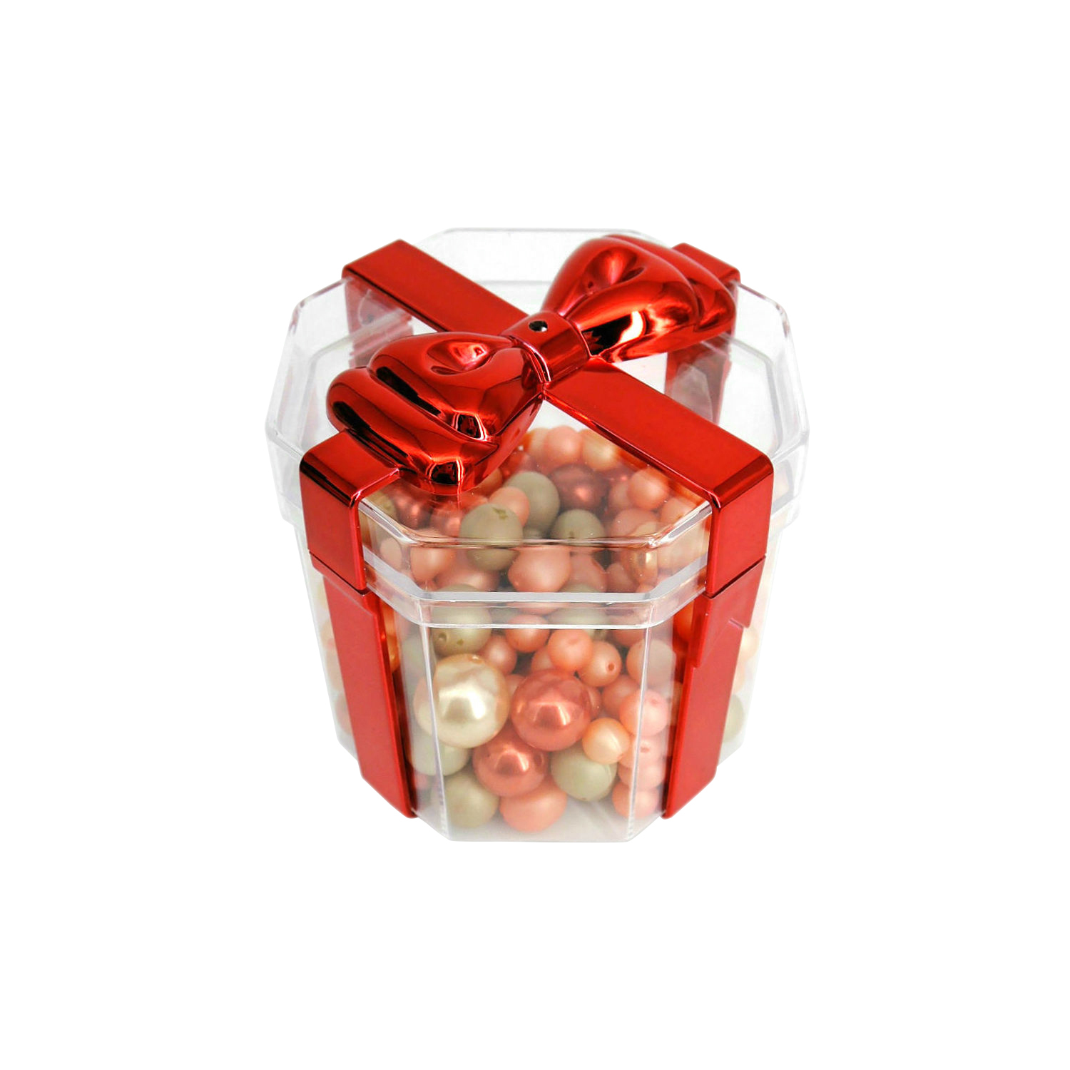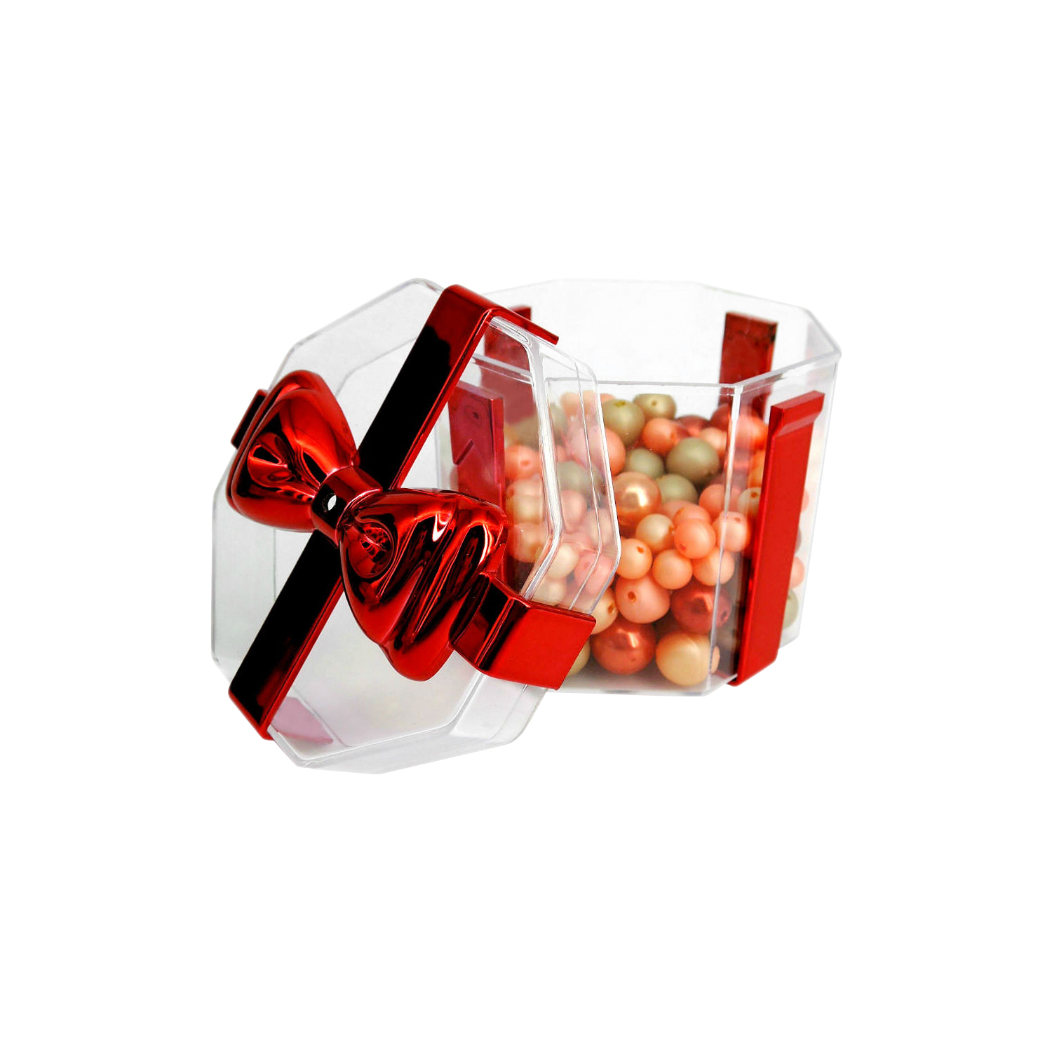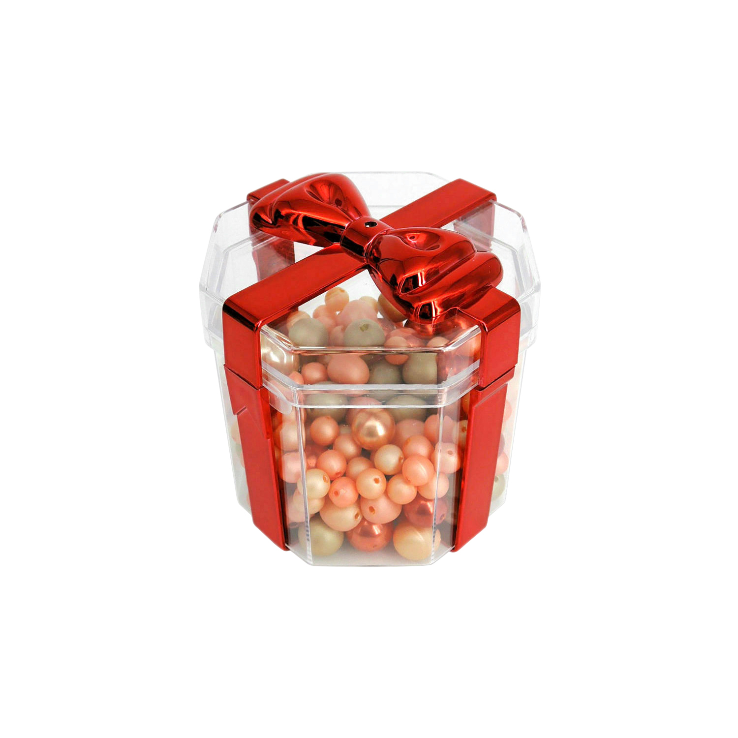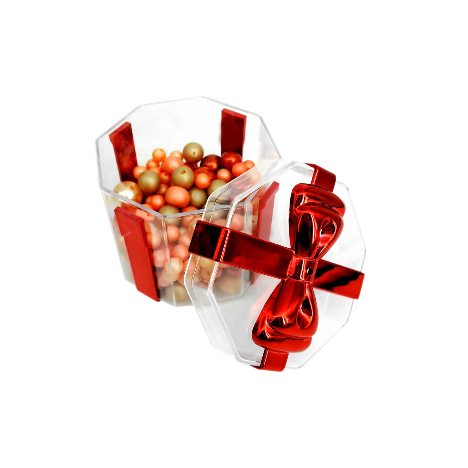 • Color: Transparent container with Red plated Bow