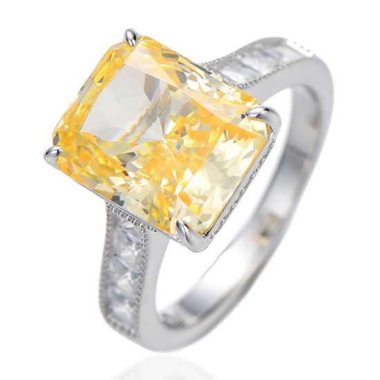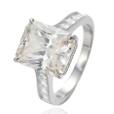 Octagon Diamond G And Square White Cubic Zircon Rhodium Silver Ring
