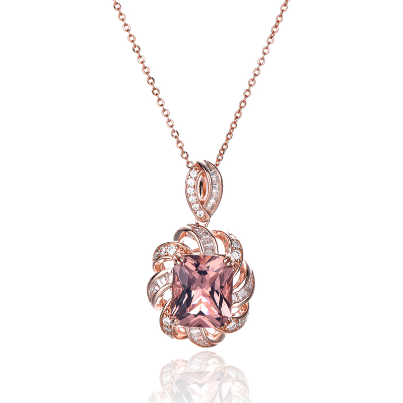 Octagon Green Nano And White Cubic Zircon Rhodium Silver Pendant