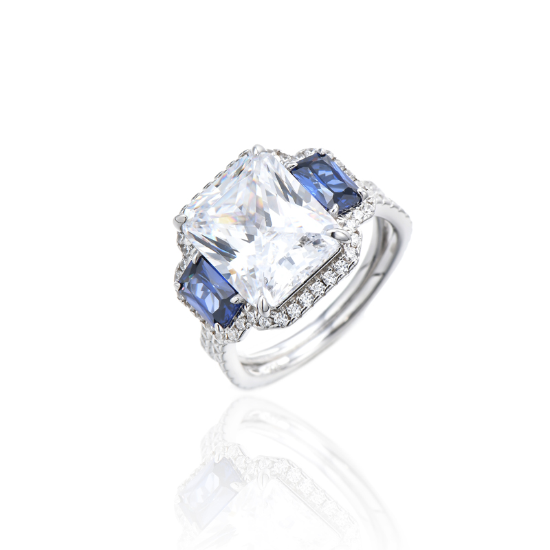 Octagon Tanzanite And White Cubic Zircon Rhodium Silver Ring