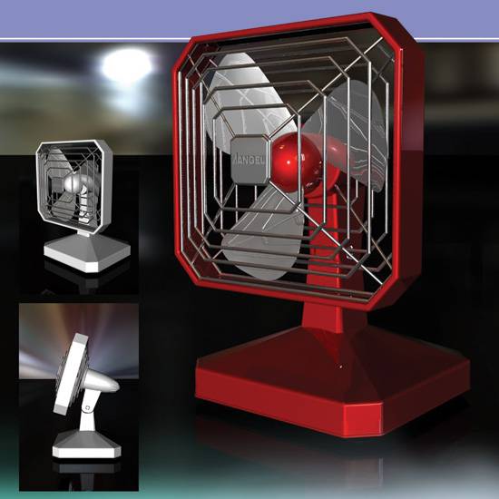 This is an odor exuding fan. It can be used on tables or in cars. It has different colours