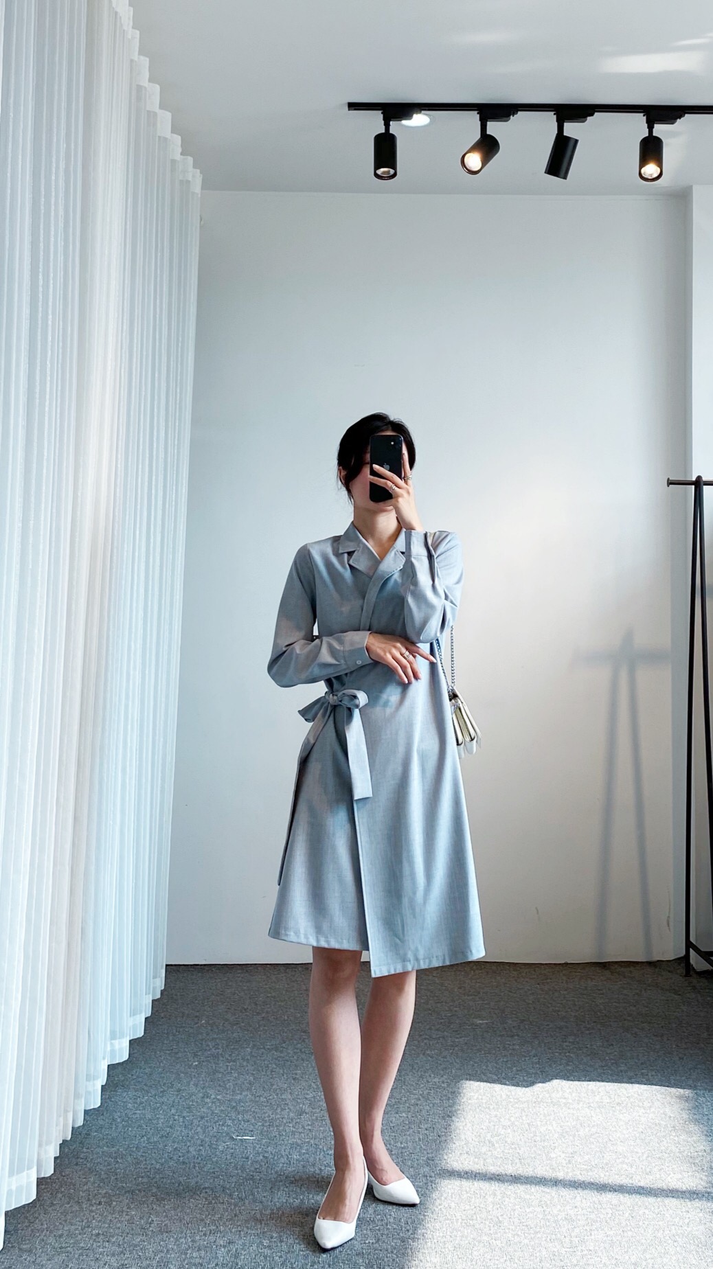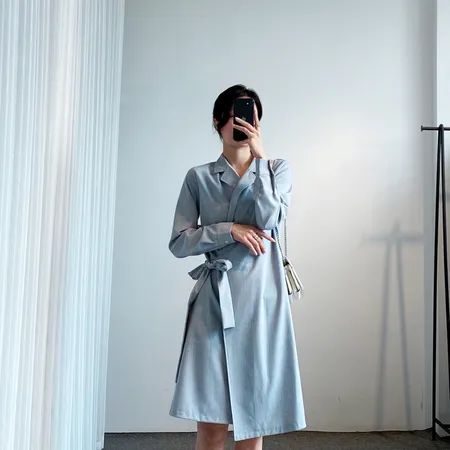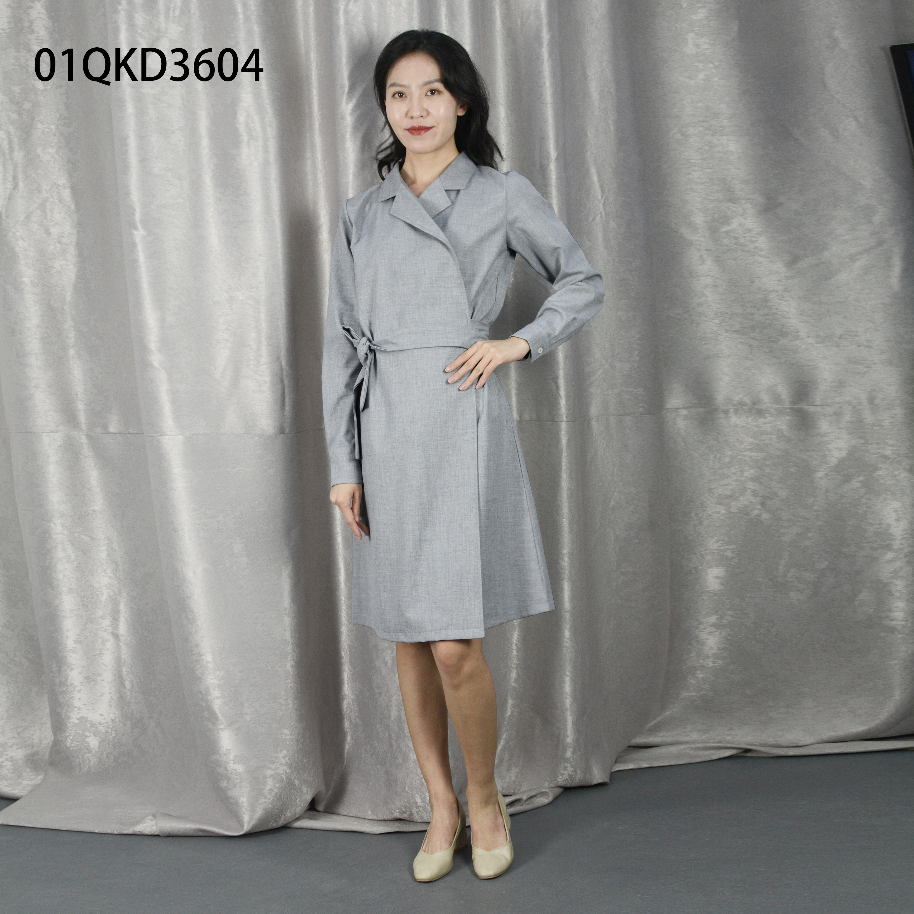 Office Lady Elegant Long Sleeve Knee-Length Wrap Dress