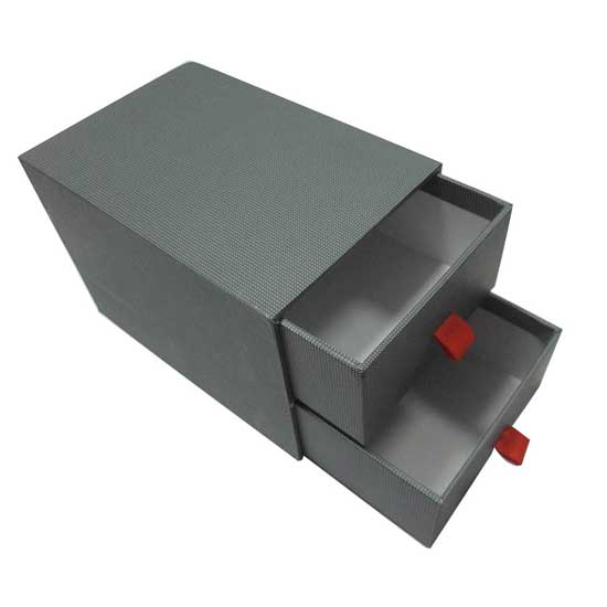 The stationery box is finely made of art paper, speciality paper and grey board. It features two drawers with comfortable knobs. This box is greatly suitable to organize your stationery items in good condition.