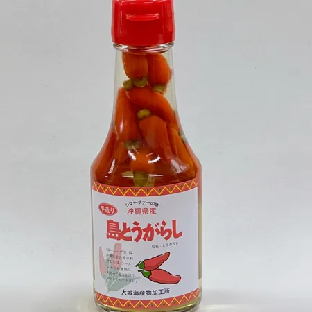 By pickling island chili peppers, which have a strong spiciness and refreshing aroma, in Okinawa's local sake (awamori), you can enjoy the unique aroma and spiciness of the chili peppers while taking advantage of the flavor of the ingredients.